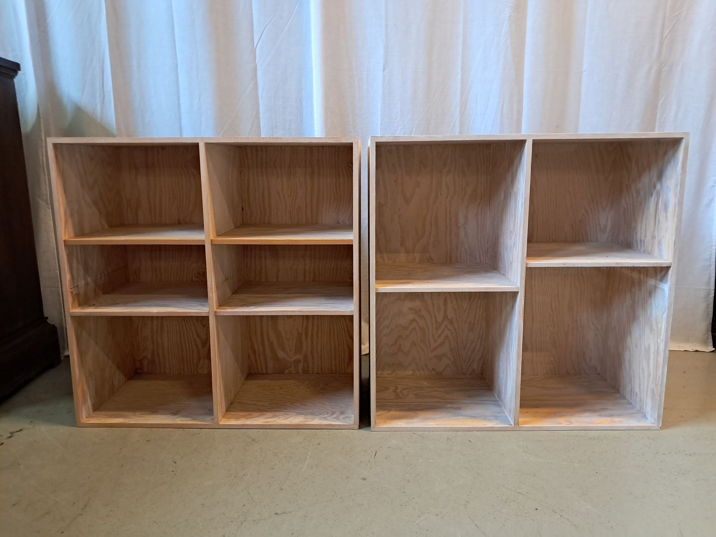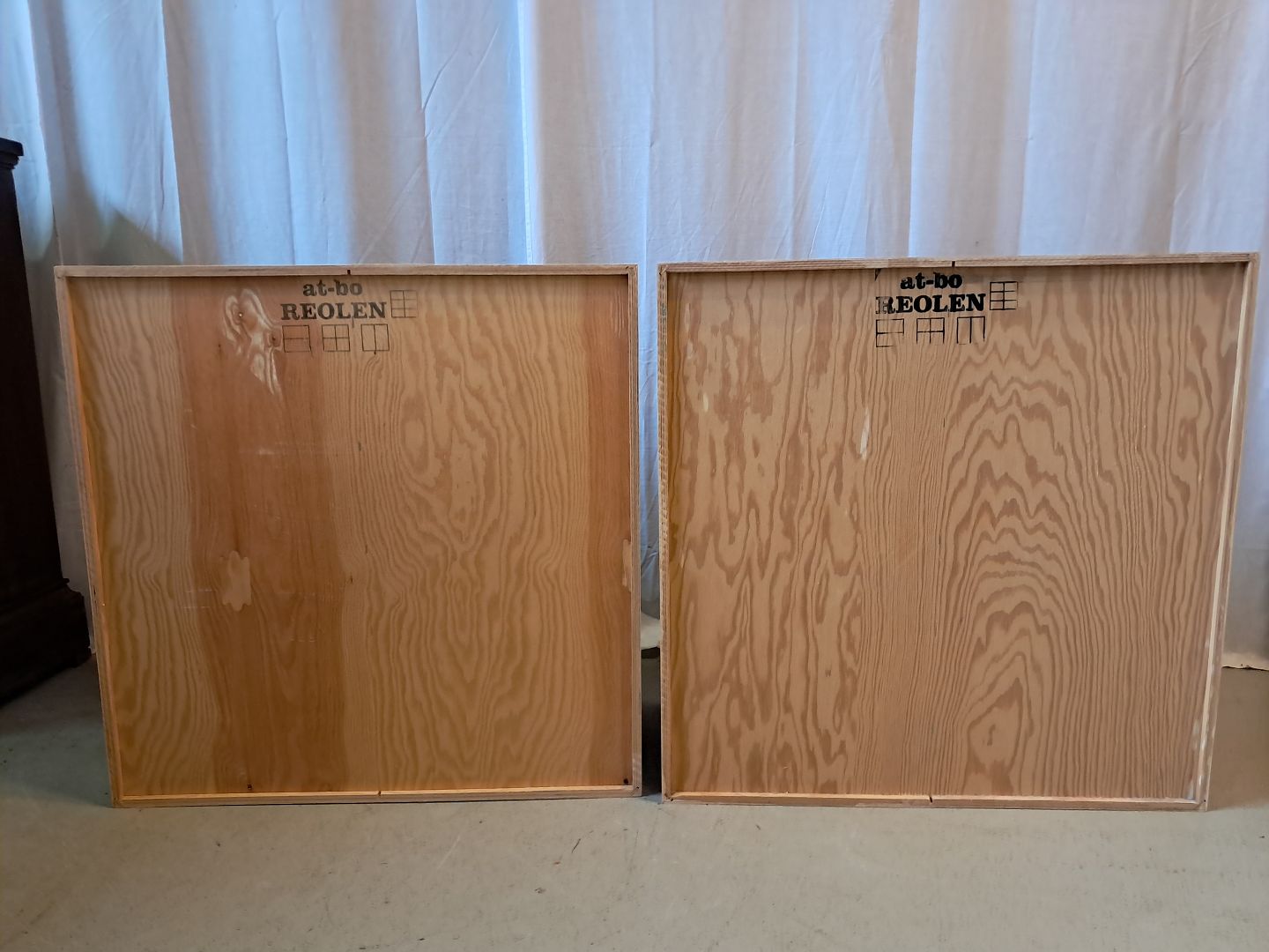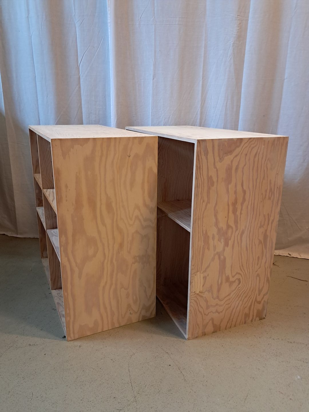 2 At-Bo reolkasser i krydsfiner, fra 2000erne.