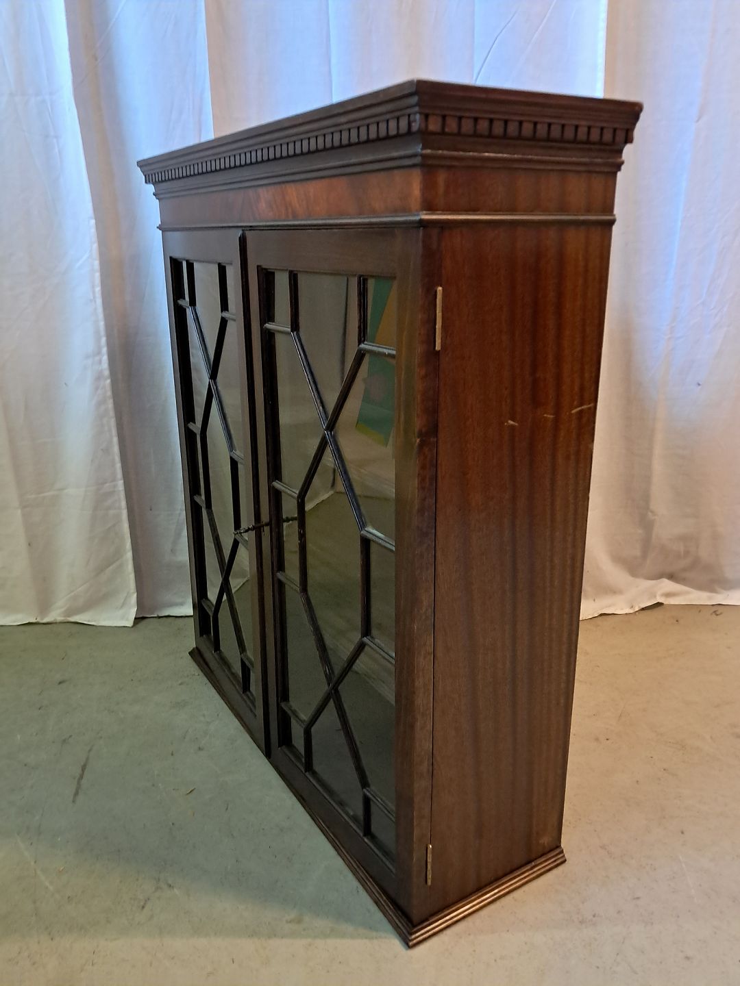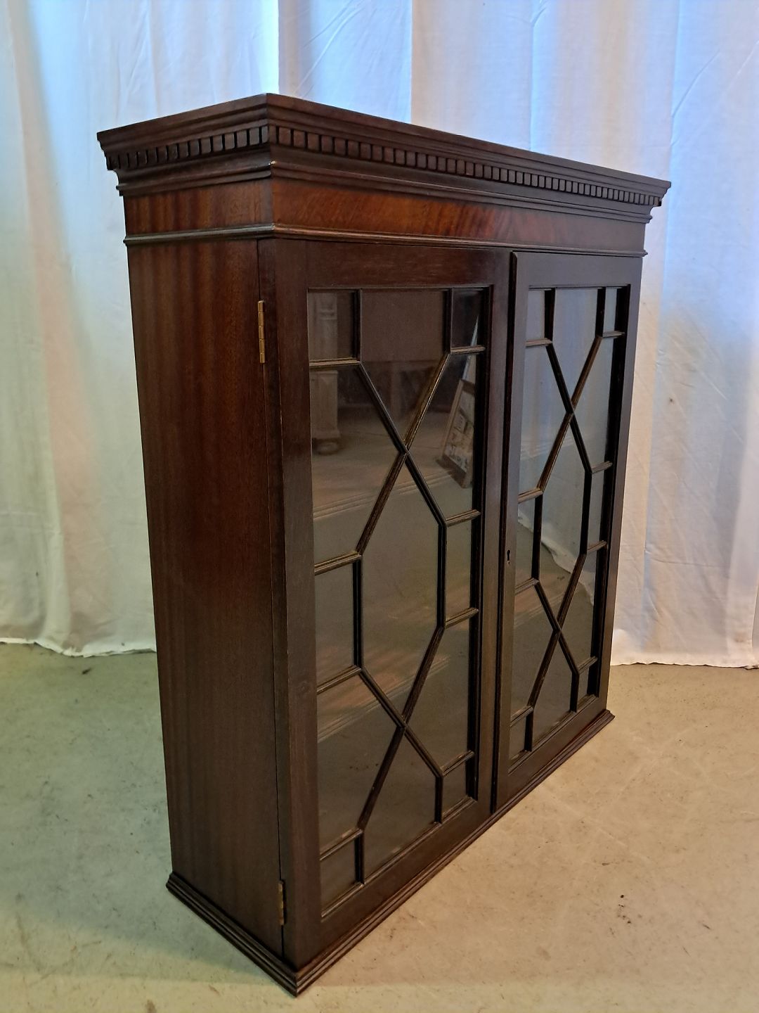 Vitrineskab i fineret mahogni, fra 1980erne,