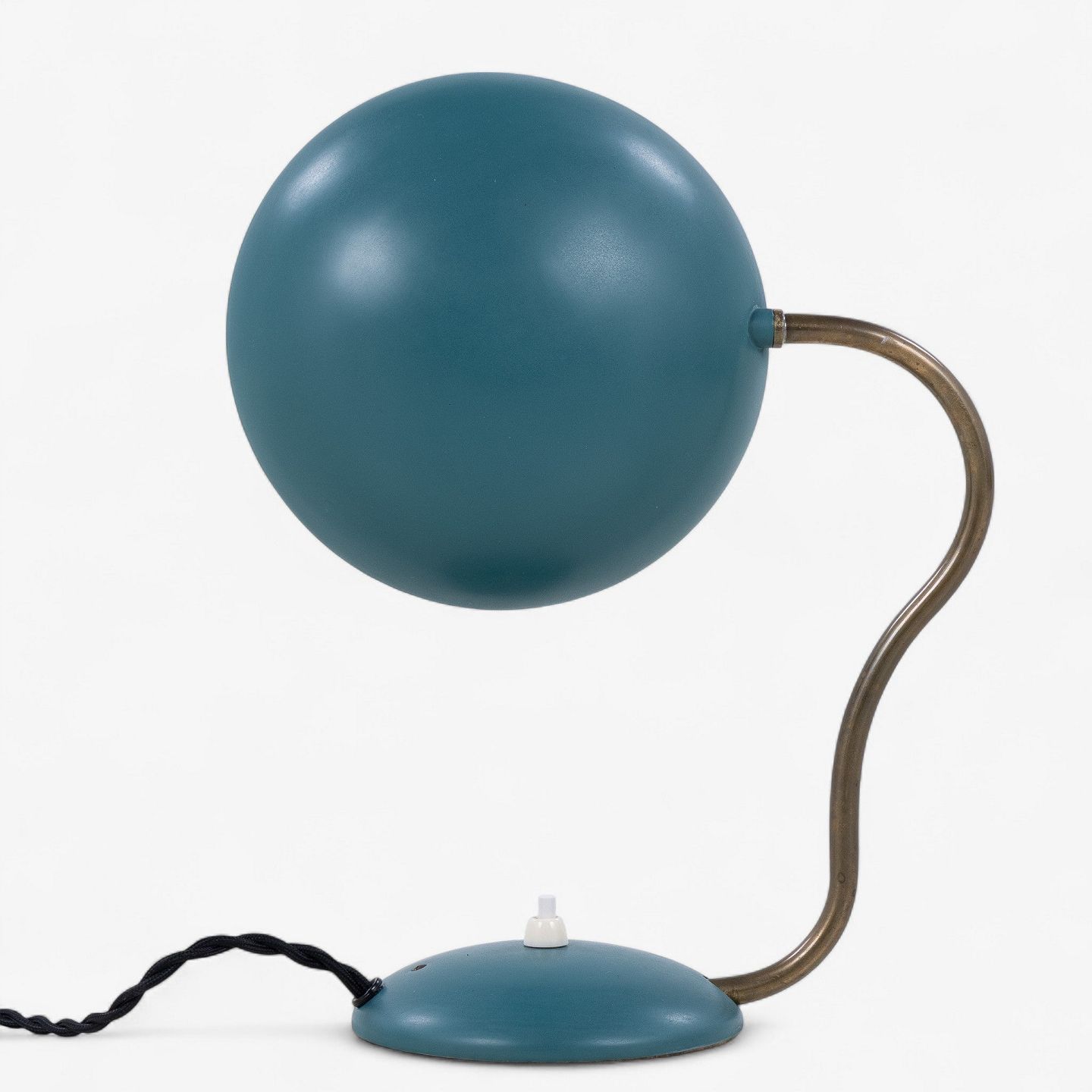 Model E1325 - Bordlampe i grønlakeret metal med justerbar arm i messing.