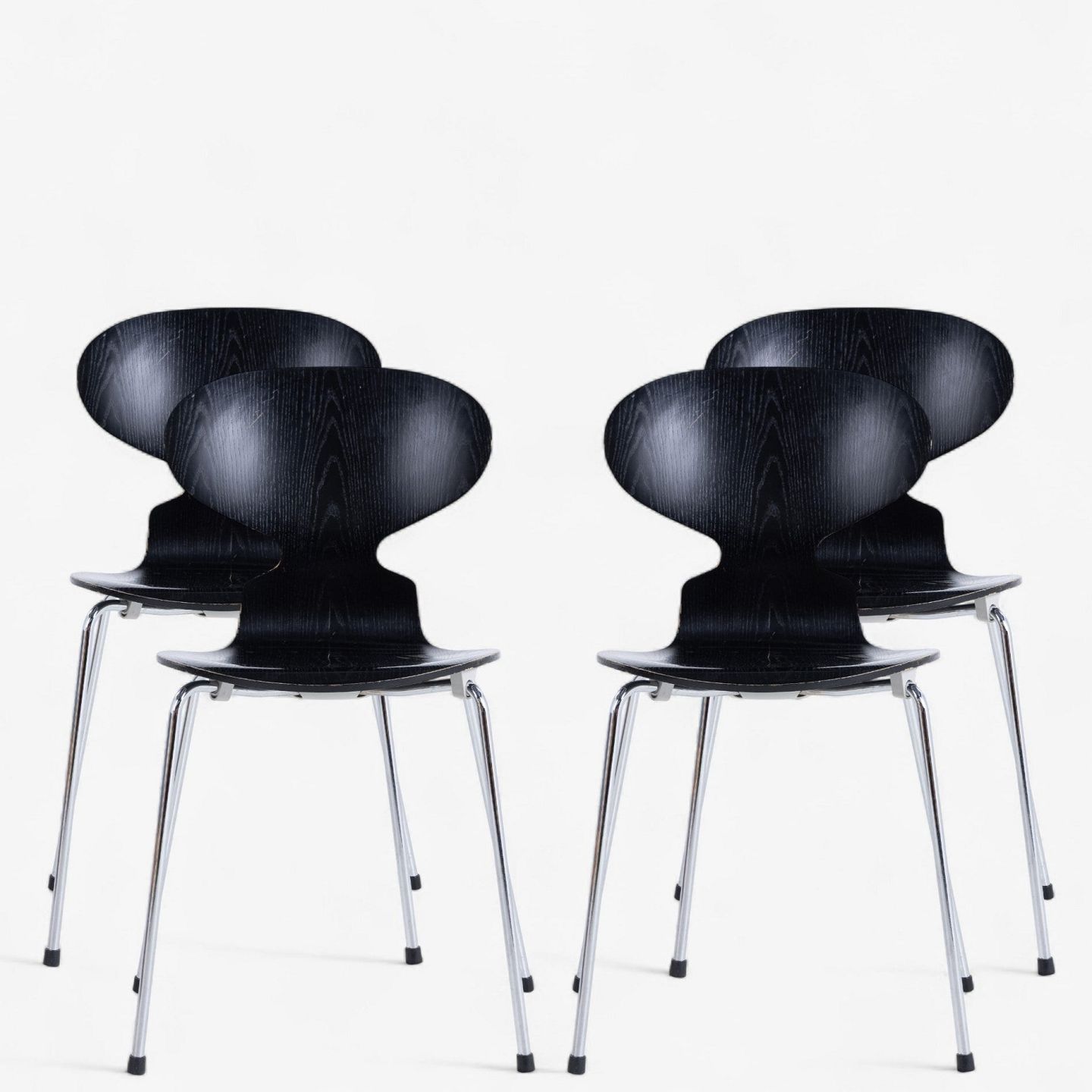 AJ 3100 - Sæt á 4 sortlaserede Myrestole med stel i stål.