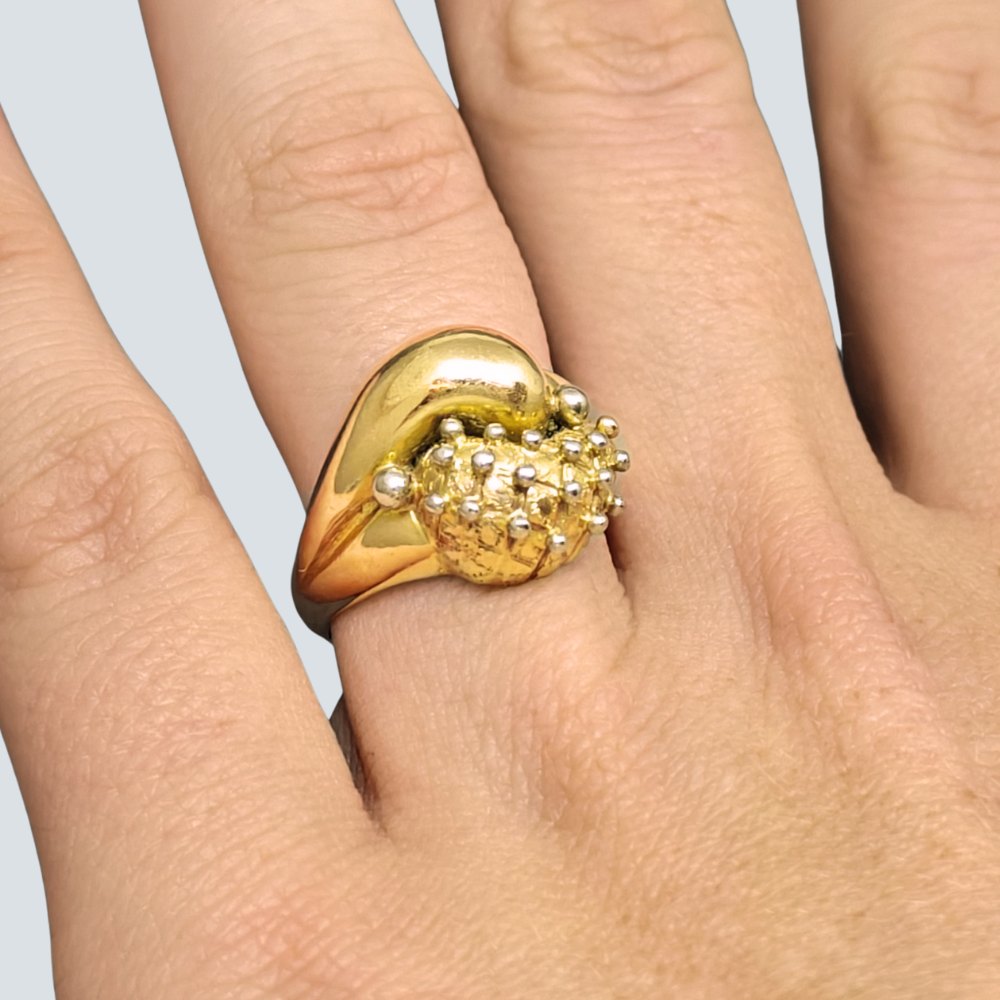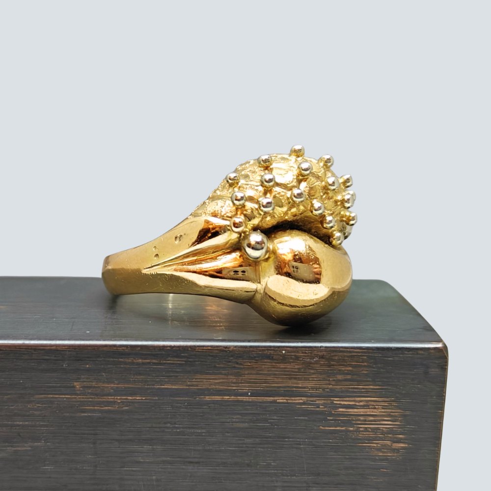 Ring i 18 kt. guld prydet med mønster foran. Ring str. 55.