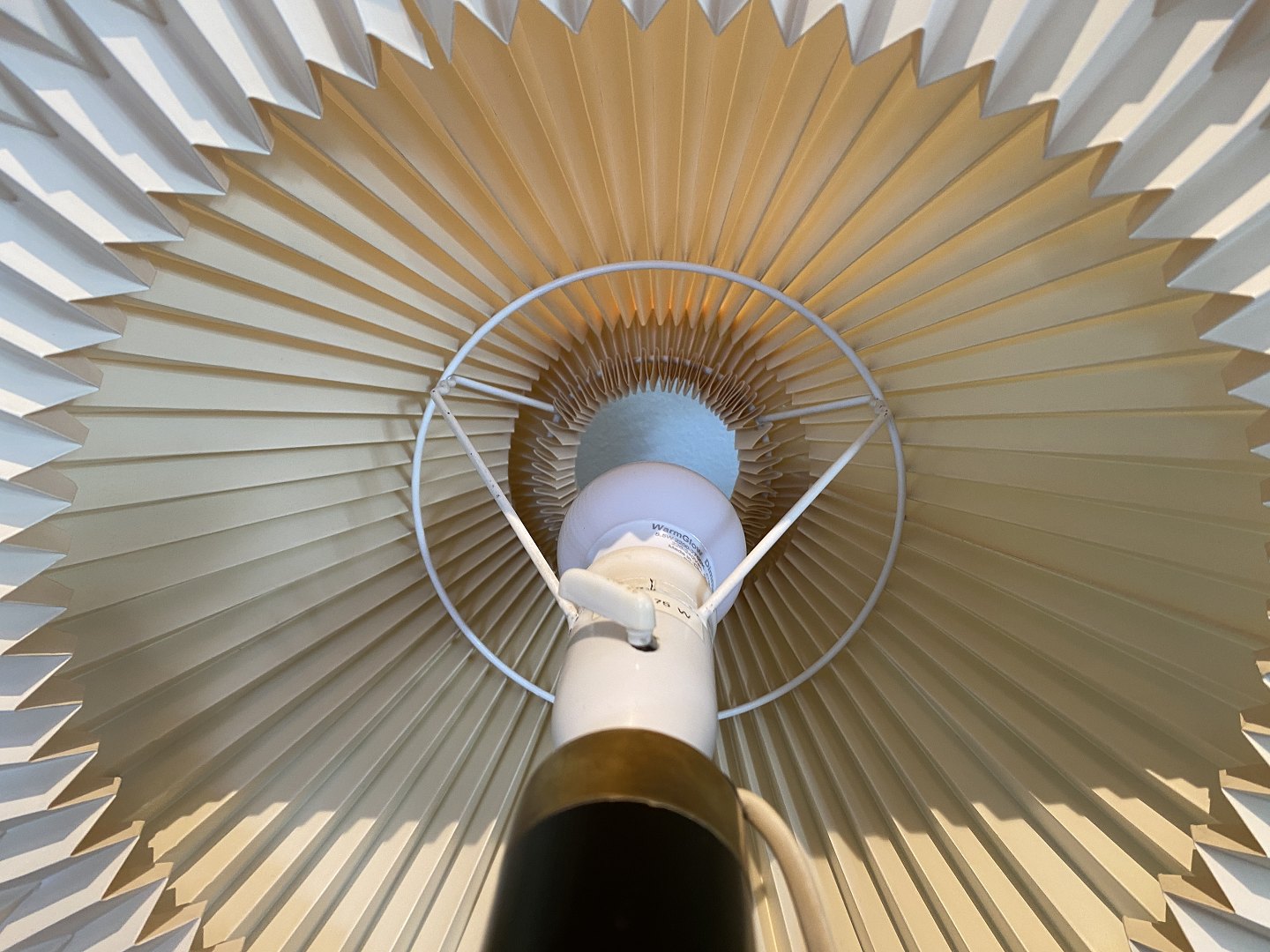 Sjælden Le Klint bordlampe med lampefod af mørk grønt glas monteret med plisseret skærm.