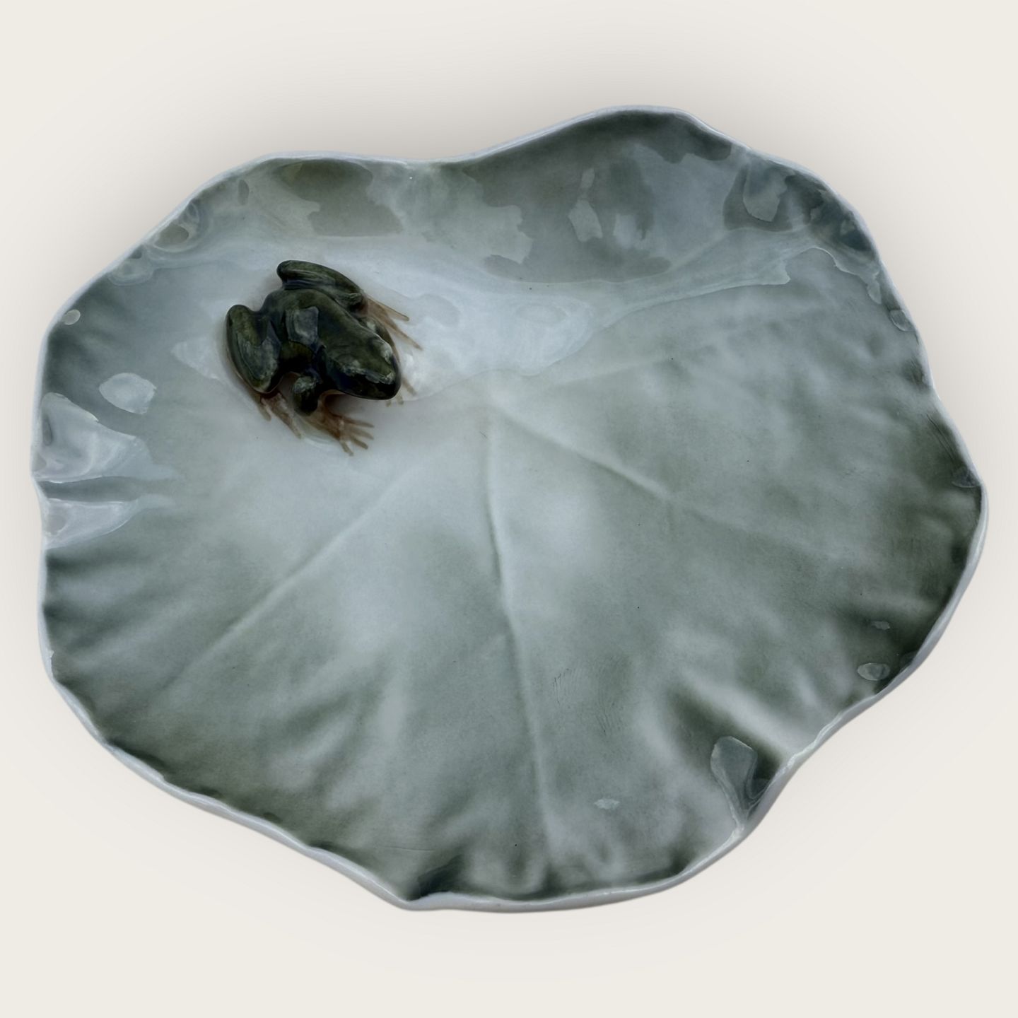 Royal Copenhagen, Grøn frø på blad, #2477, ca. 10x11cm, 1. sortering *fin stand*