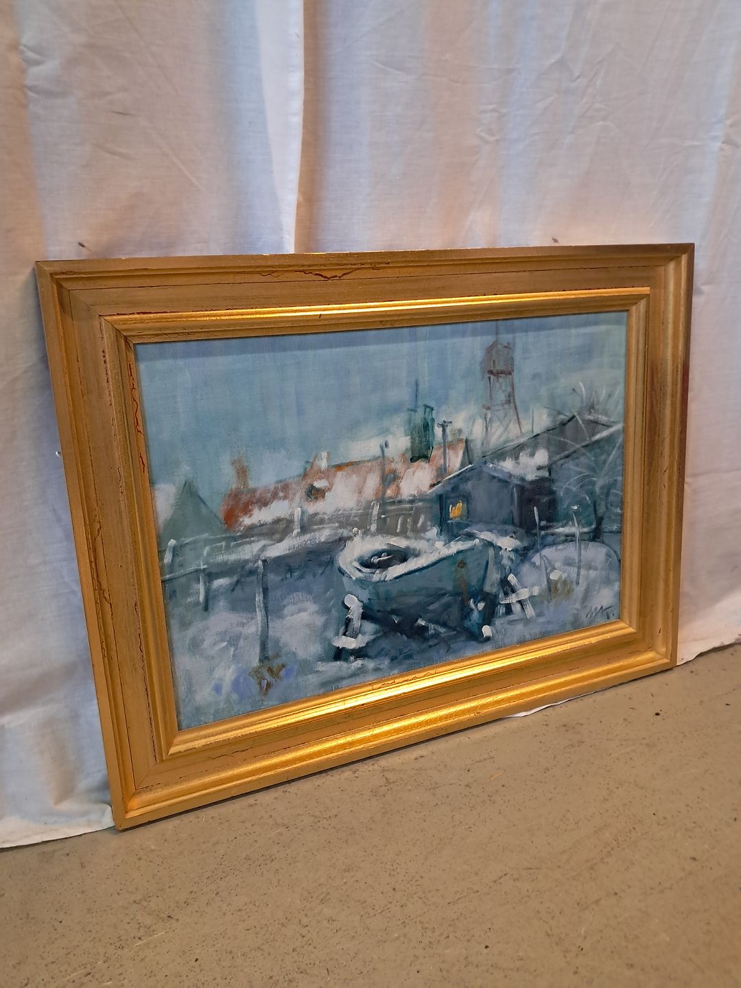 Maleri af Dragør Havn i guldmalet ramme, af : Mogens Amdi Thorsen (1924-2016)