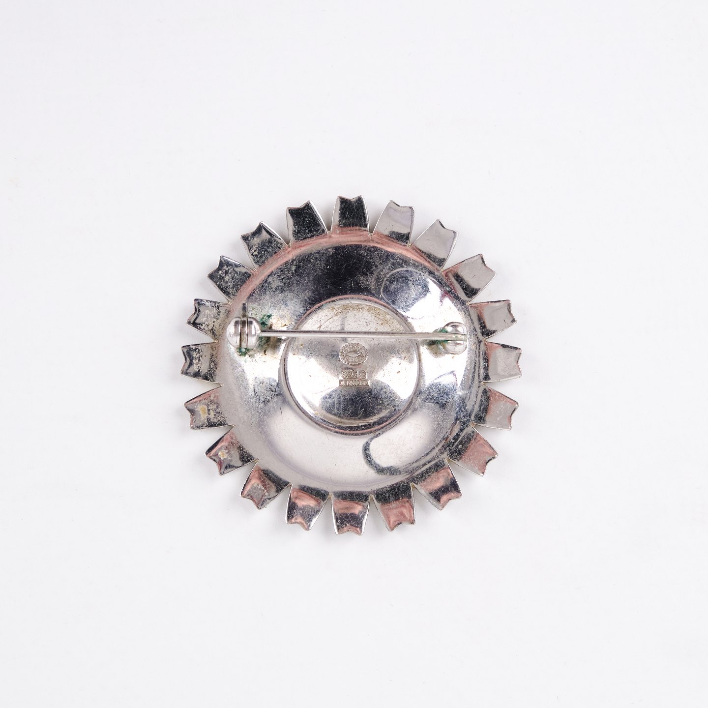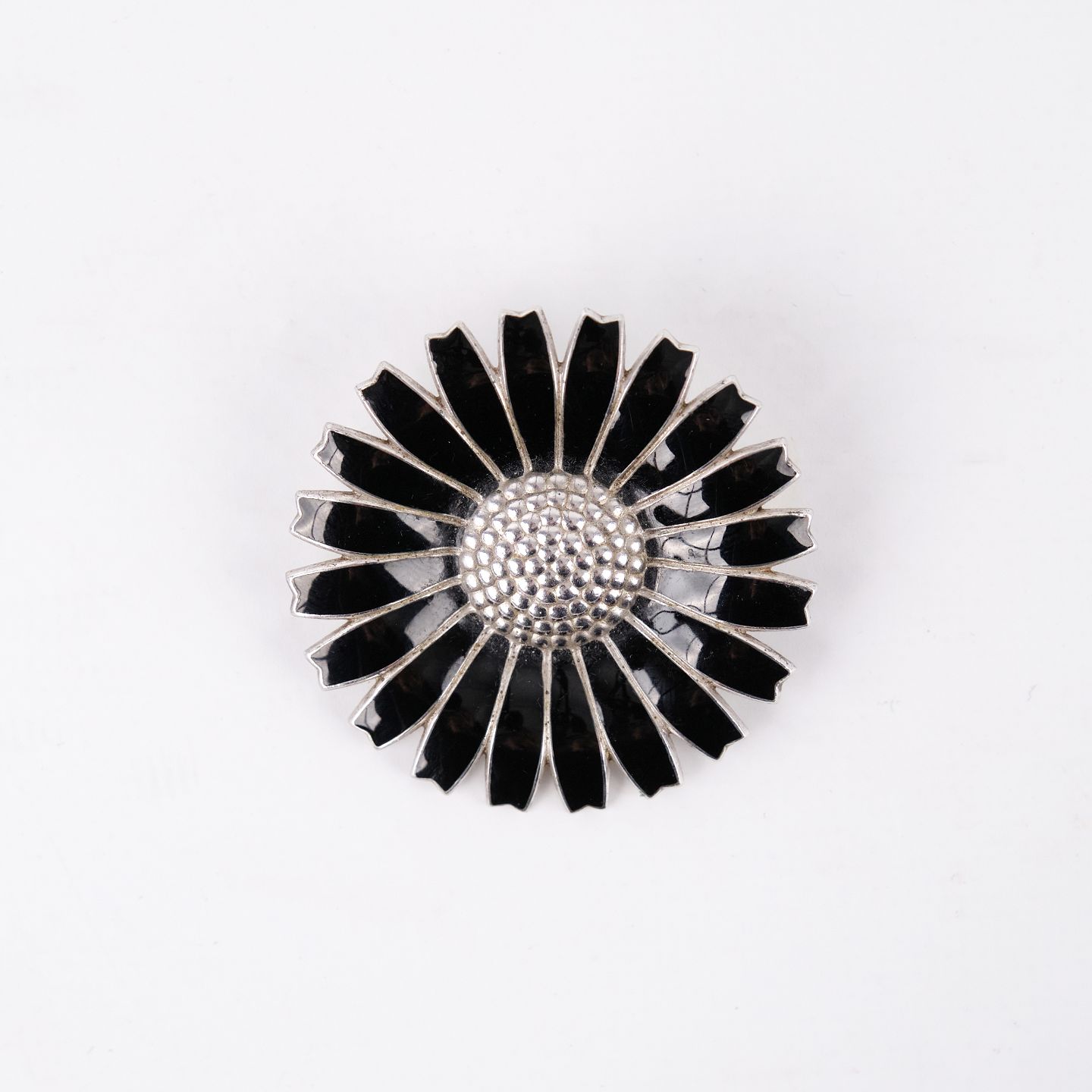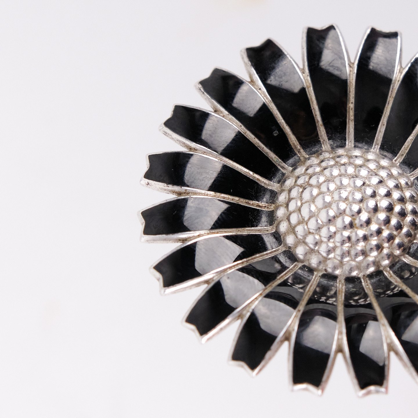 Broche fra 1980’erne, udført i sterling sølv og stemplet 925S Denmark fra Georg Jensen. Et klassisk smykke i dansk designtradition, kendetegnet ved enkelt formsprog og solidt håndværk. Et dekorativt og tidløst samleobjekt fra den anerkendte producent.