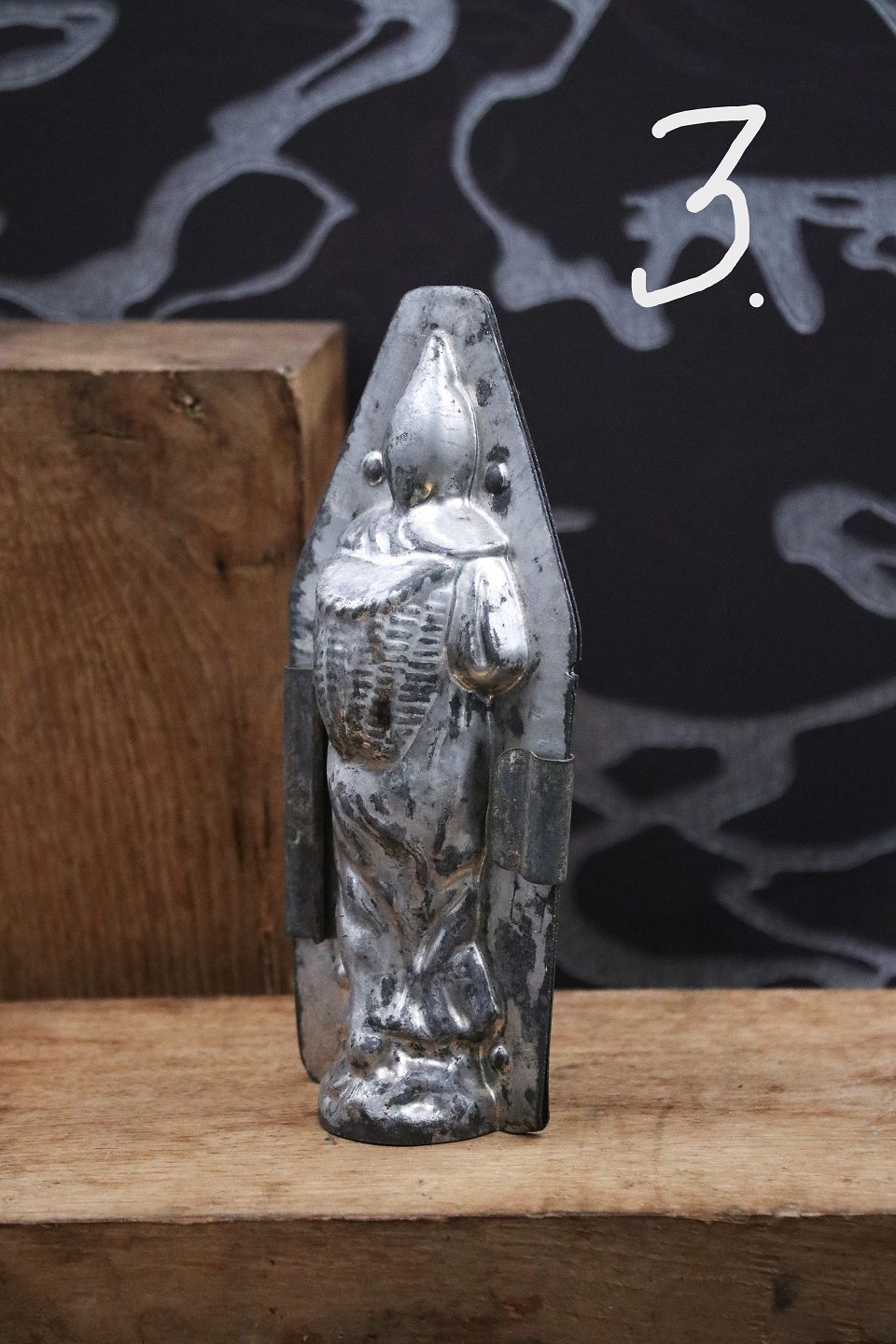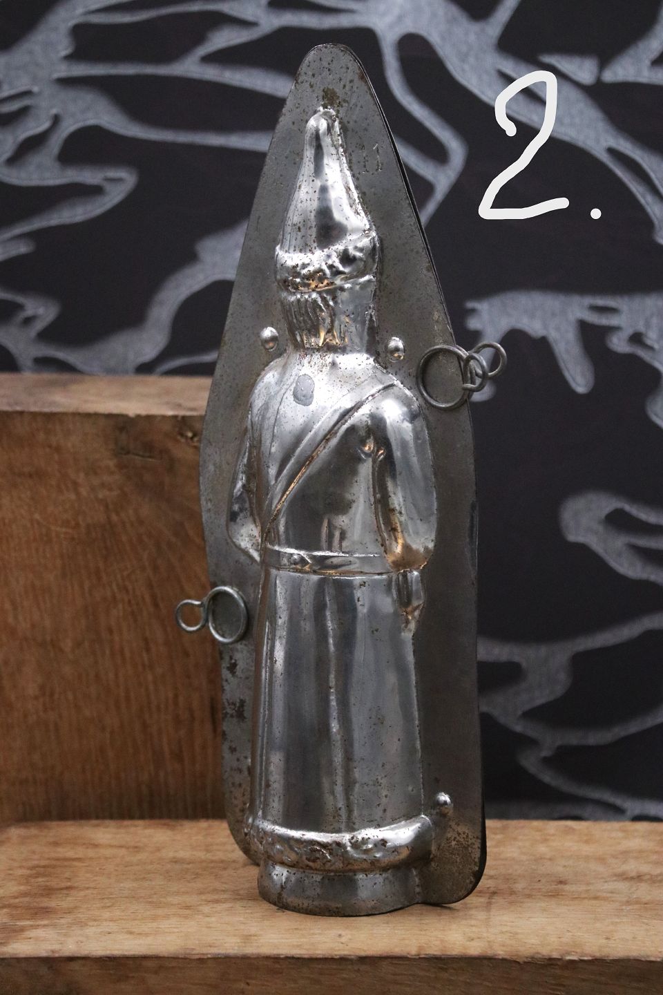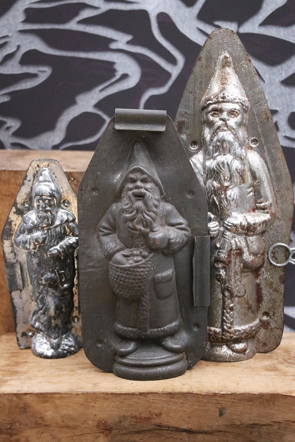 Dekorative , gamle chokoladeforme af julemænd lavet i metal med en rigtig fin patina.