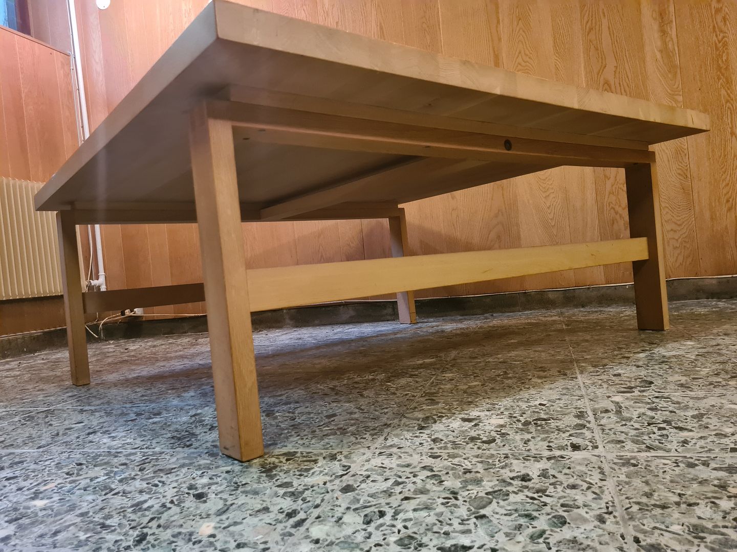 Kvadratisk sofabord fra 1970´erne i massiv eg. Formgivet hos Laboremus i Viborg. Fremstår pænt og velholdt uden nævneværdige brugsspor.