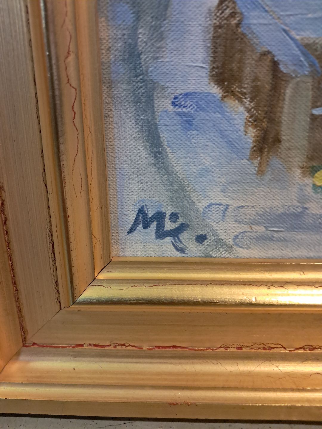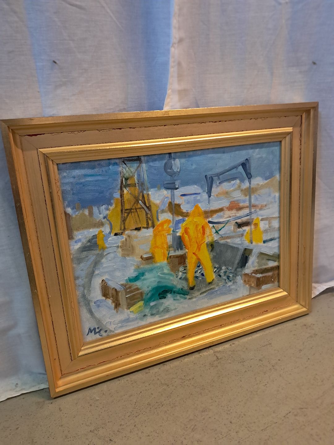 Maleri af Dragør Havn i guldmalet ramme, af : Mogens Amdi Thorsen (1924-2016)