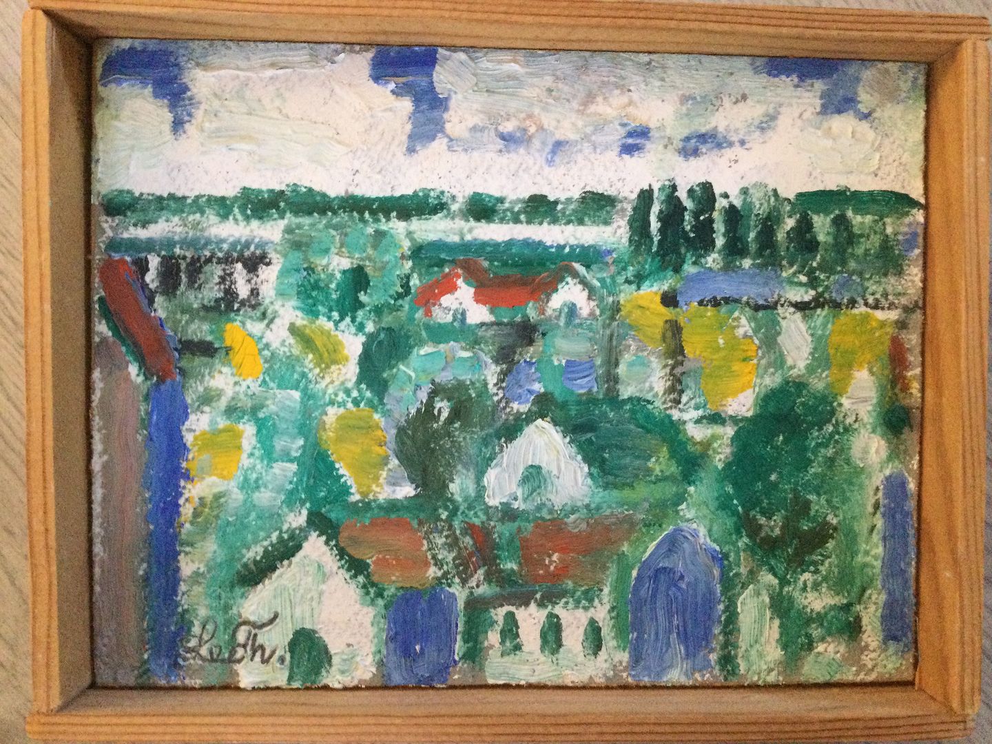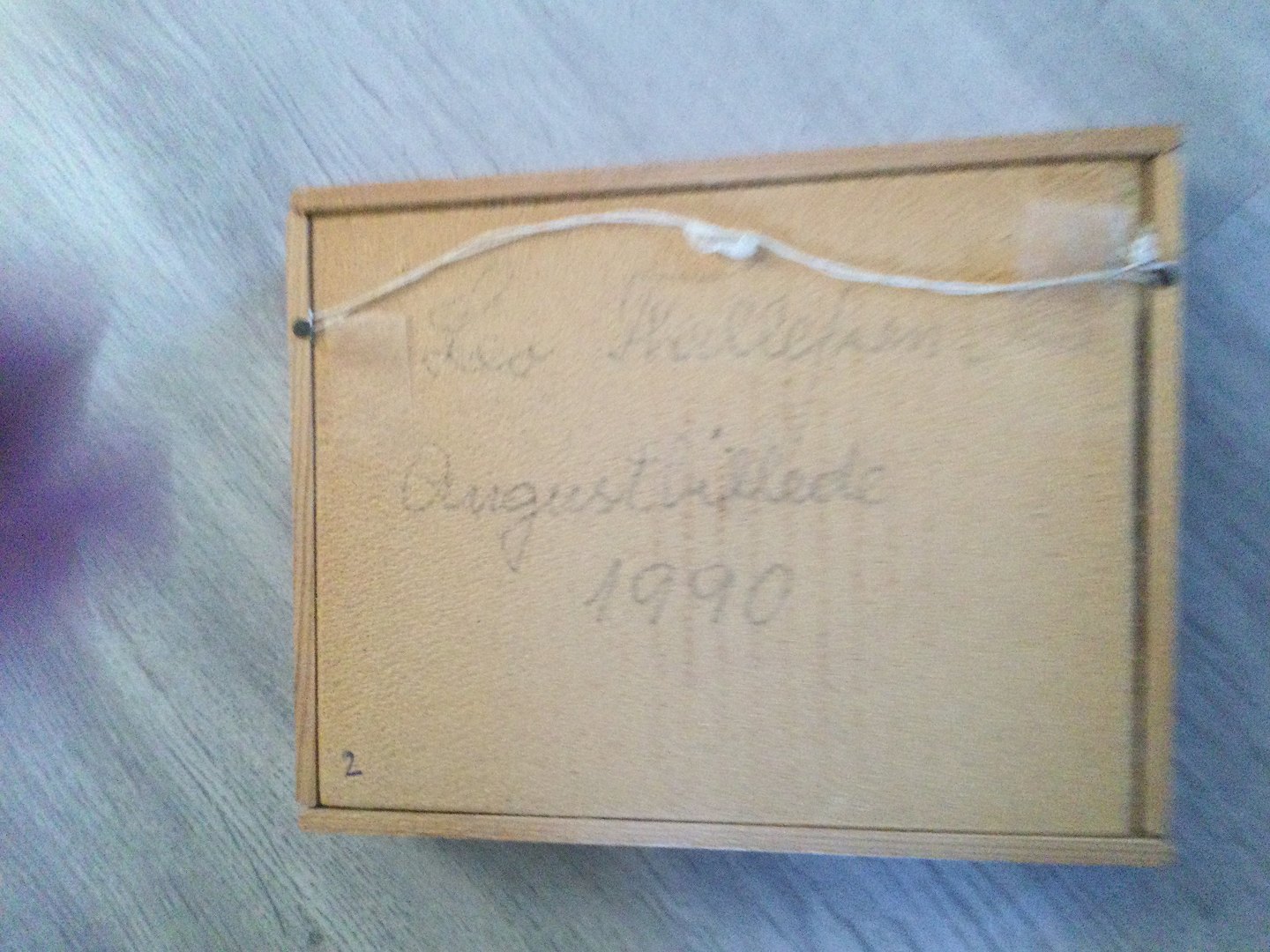 Text available in Danish: Maleri af Leo Thellefsen - August Billede 1990.
