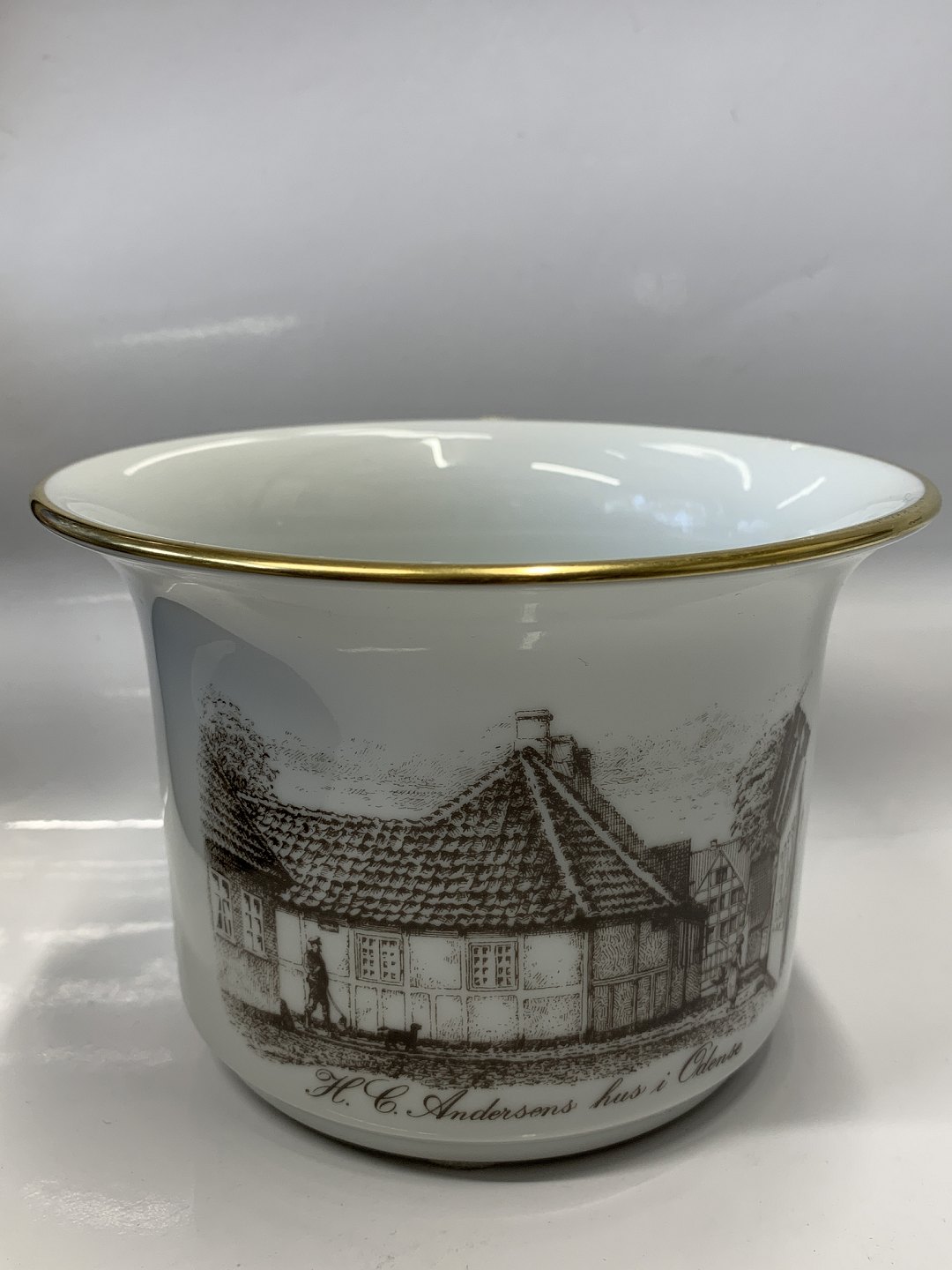 Bing & Grøndahl H.C. Andersen urtepotteskjuler med guldkant.