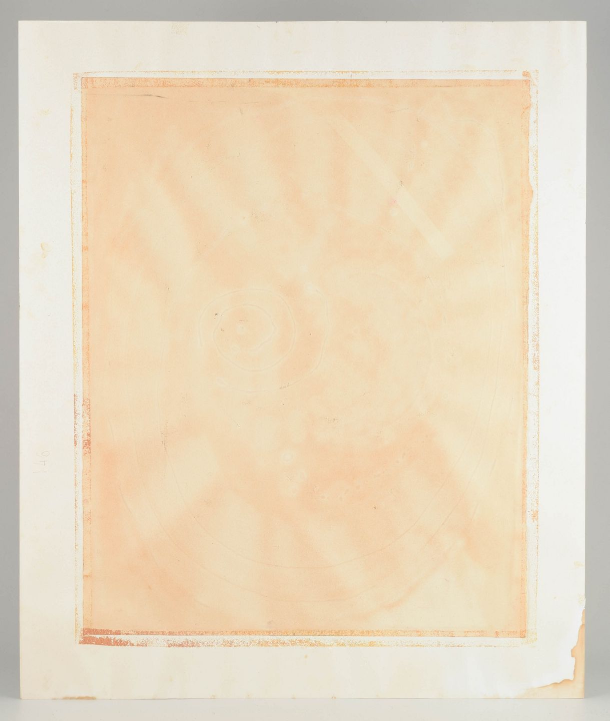Et abstrakt og kosmisk motiv med organiske, spiralformede bevægelser i røde, gule og blå toner, centreret om et cirkulært felt med sol- og månelignende former. Kompositionen balancerer mellem det poetiske og det symbolske med grafiske rytmer og håndtegnet energi.