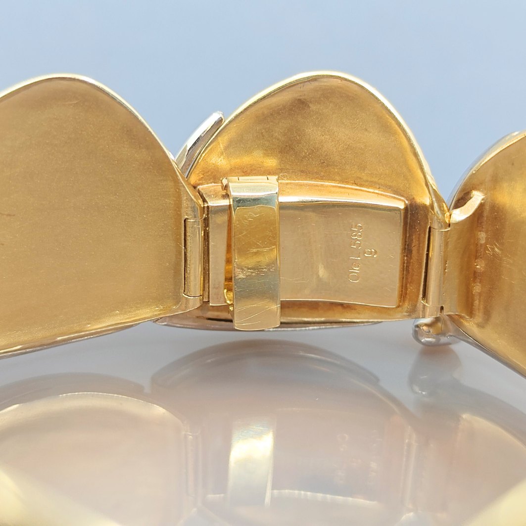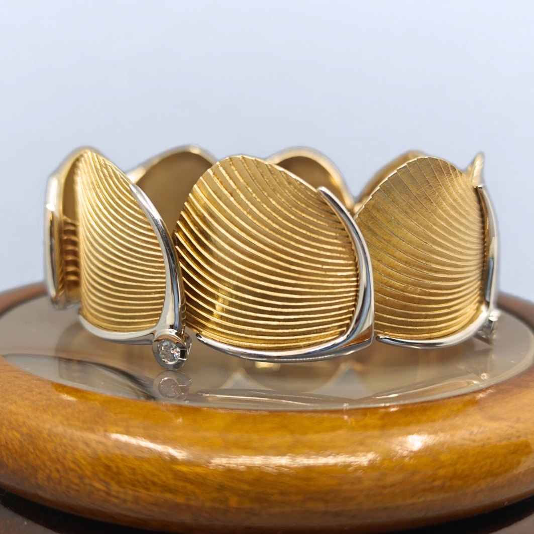 Ole Lynggaard; Leddelt armbånd i 14 kt guld og hvidguld, med fire diamanter, i alt 0.28 ct. W VS - VVS. Med kasselås og sikkerheslås.