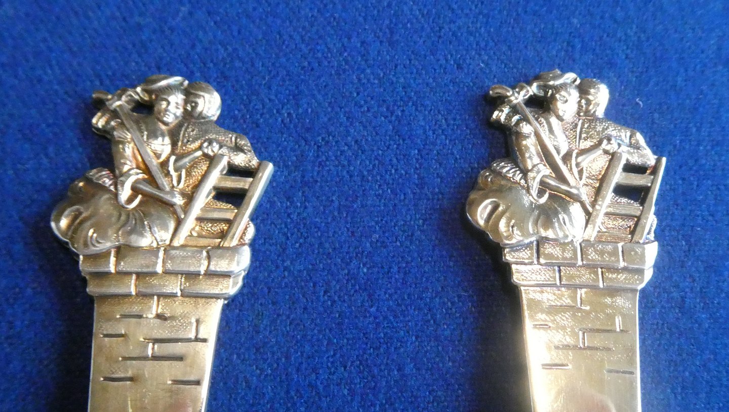 H.C. Andersen barnebestik i tretårnet forgyldt sølv med Hyrdinden og Skorstensfejeren.