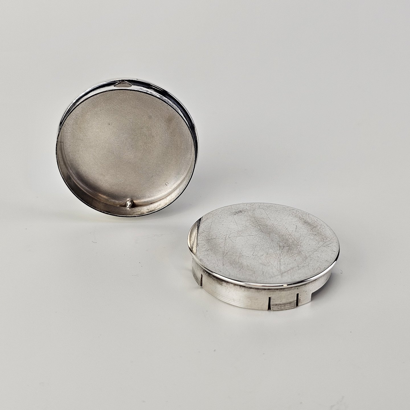 Rund pilleæske i 830 sølv med motiv af indgraverede hjerter