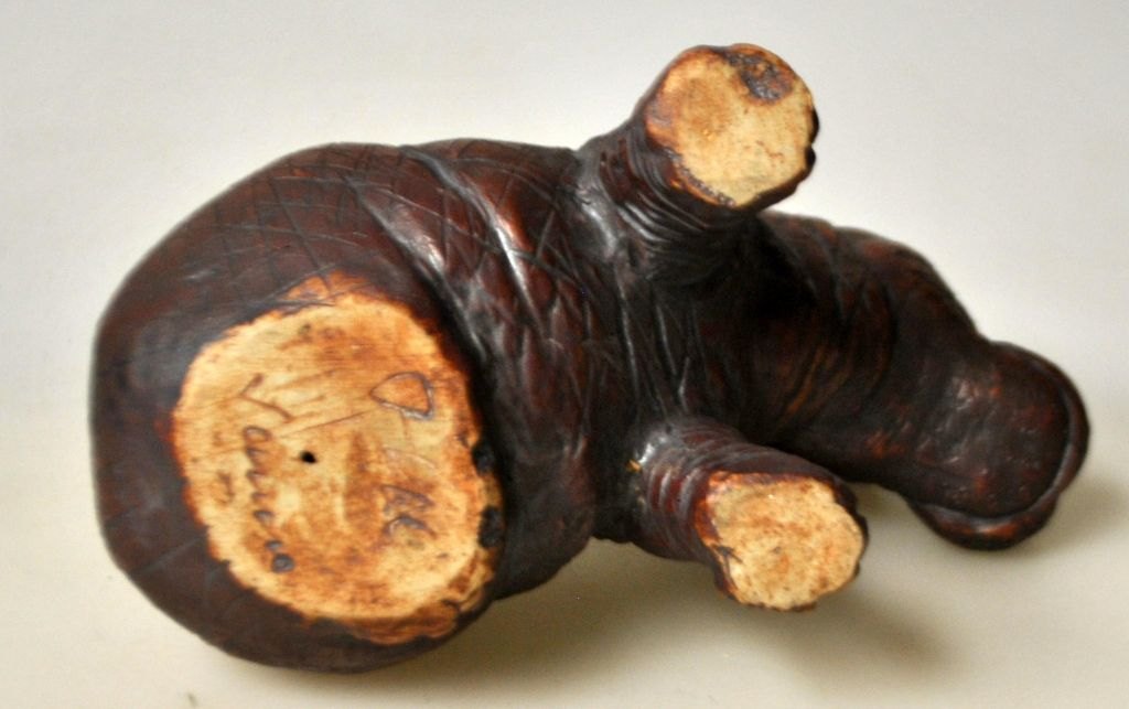 Carlsen, Paul Hauch (1921 - 2006) Danmark: En flodhest. Stentøj. Grønglaseret. Signeret: PHC Samsø. L.: 15 cm. H.: 10 cm.