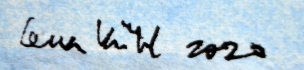 Kühl, Lena (1950 -) Danmark: Landskab, 2020. Akvarel på papir. Signeret: Lena Kühl 2020. H: 12 cm. B: 20 cm.