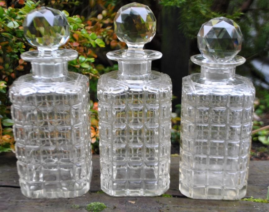 Engelsk tantalus med tre krystal karafler, 19. årh.