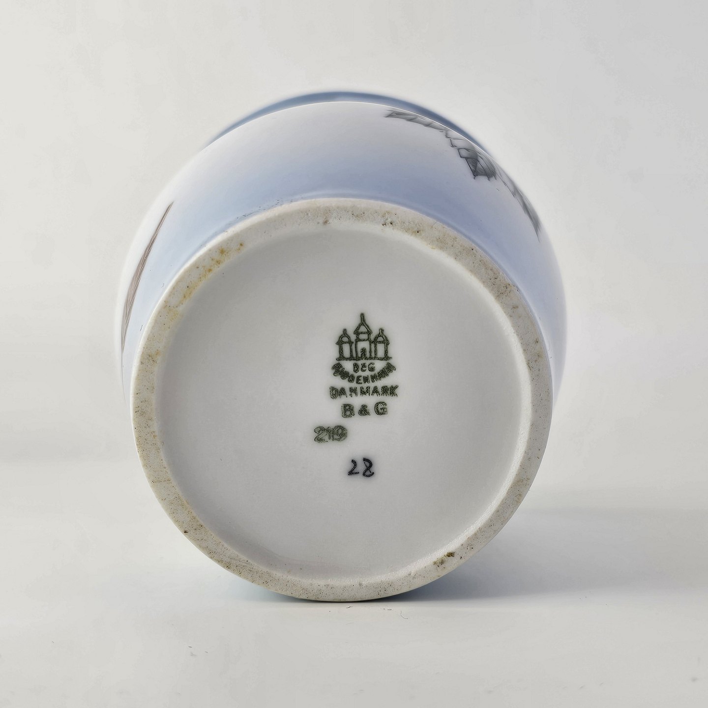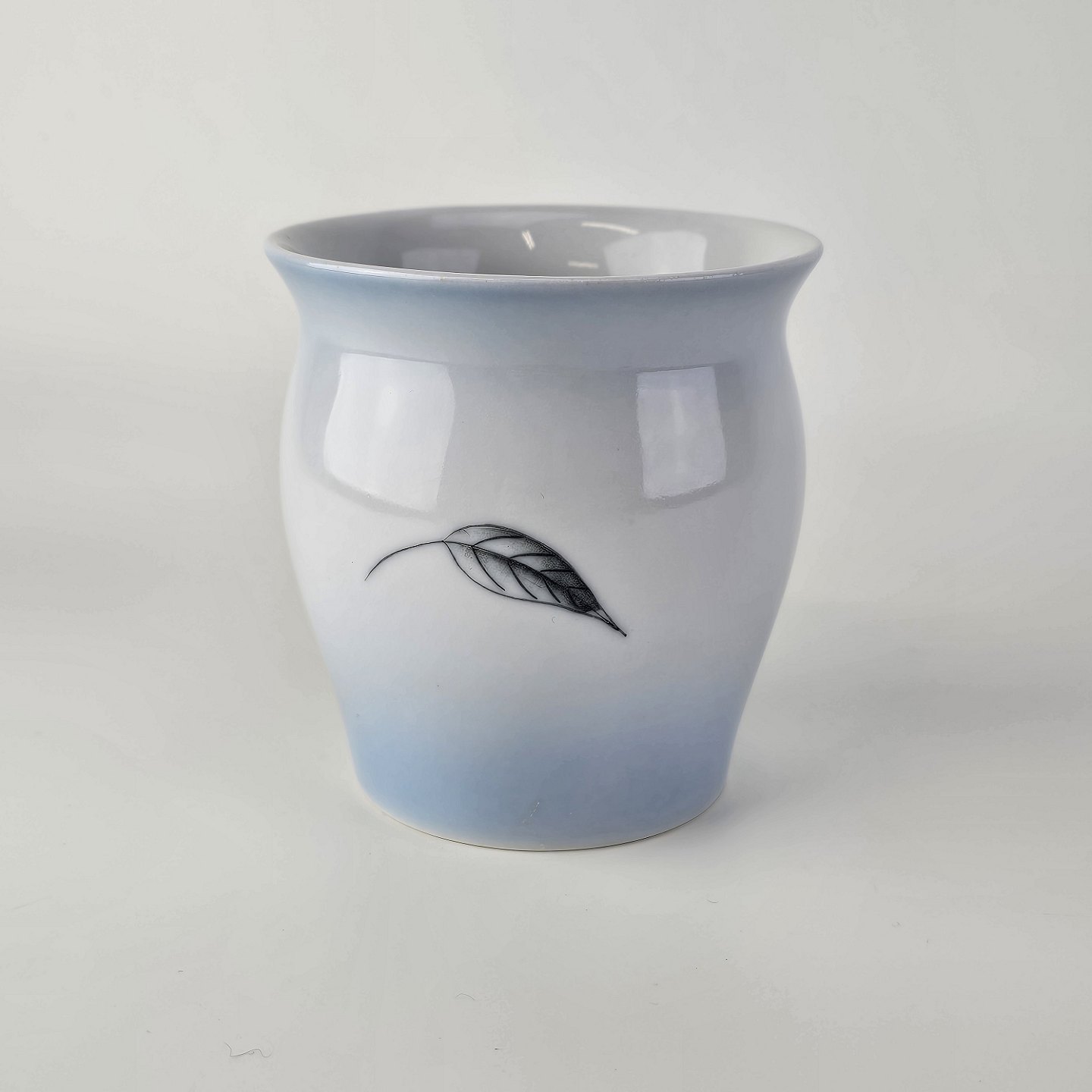 Løvfald er hvidt porcelæn som toner ud i blå, dekoreret med faldende blade i sort og rødt