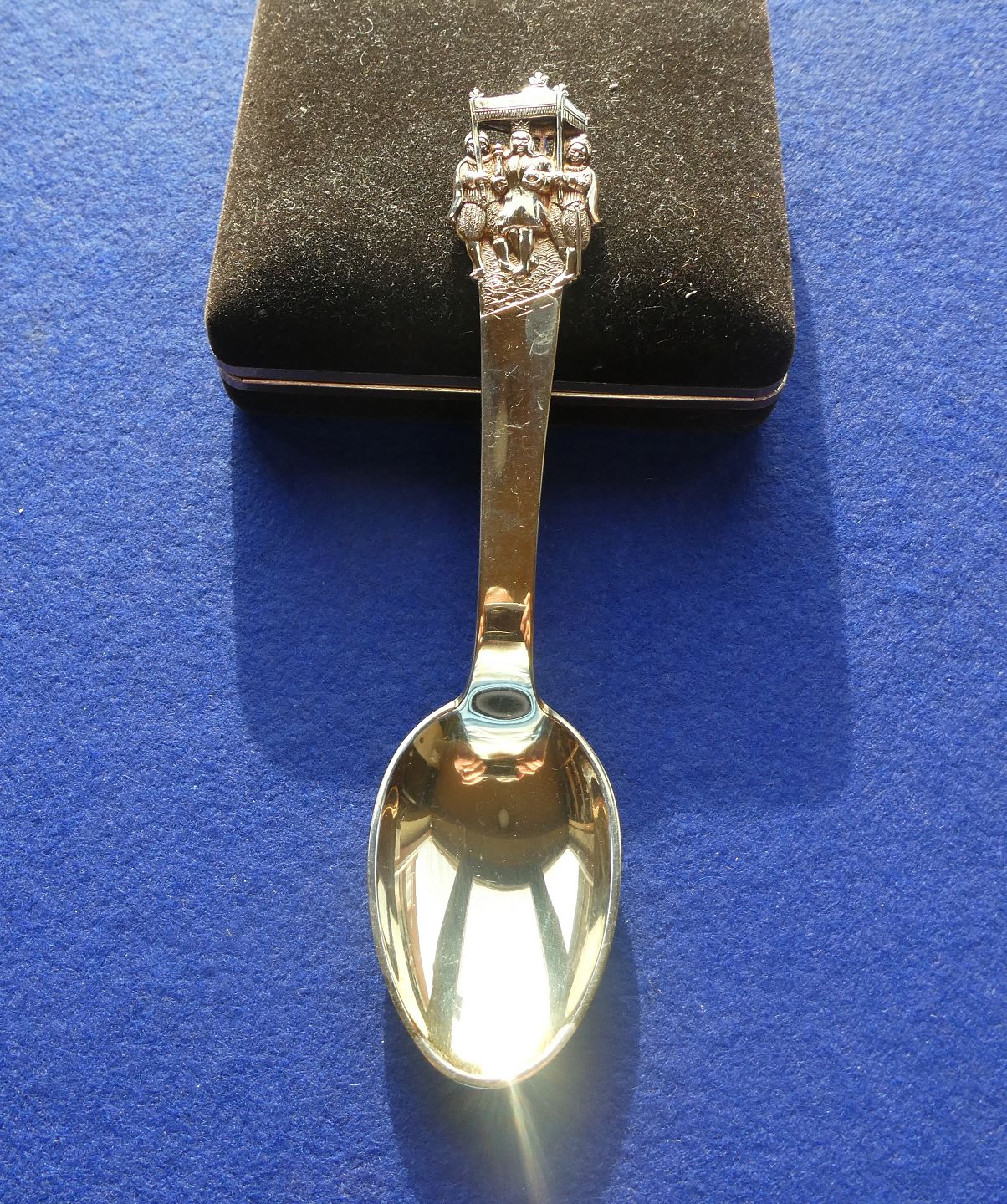 H.C. Andersen barnebestik i tretårnet forgyldt sølv med Kejserens nye Klæder.