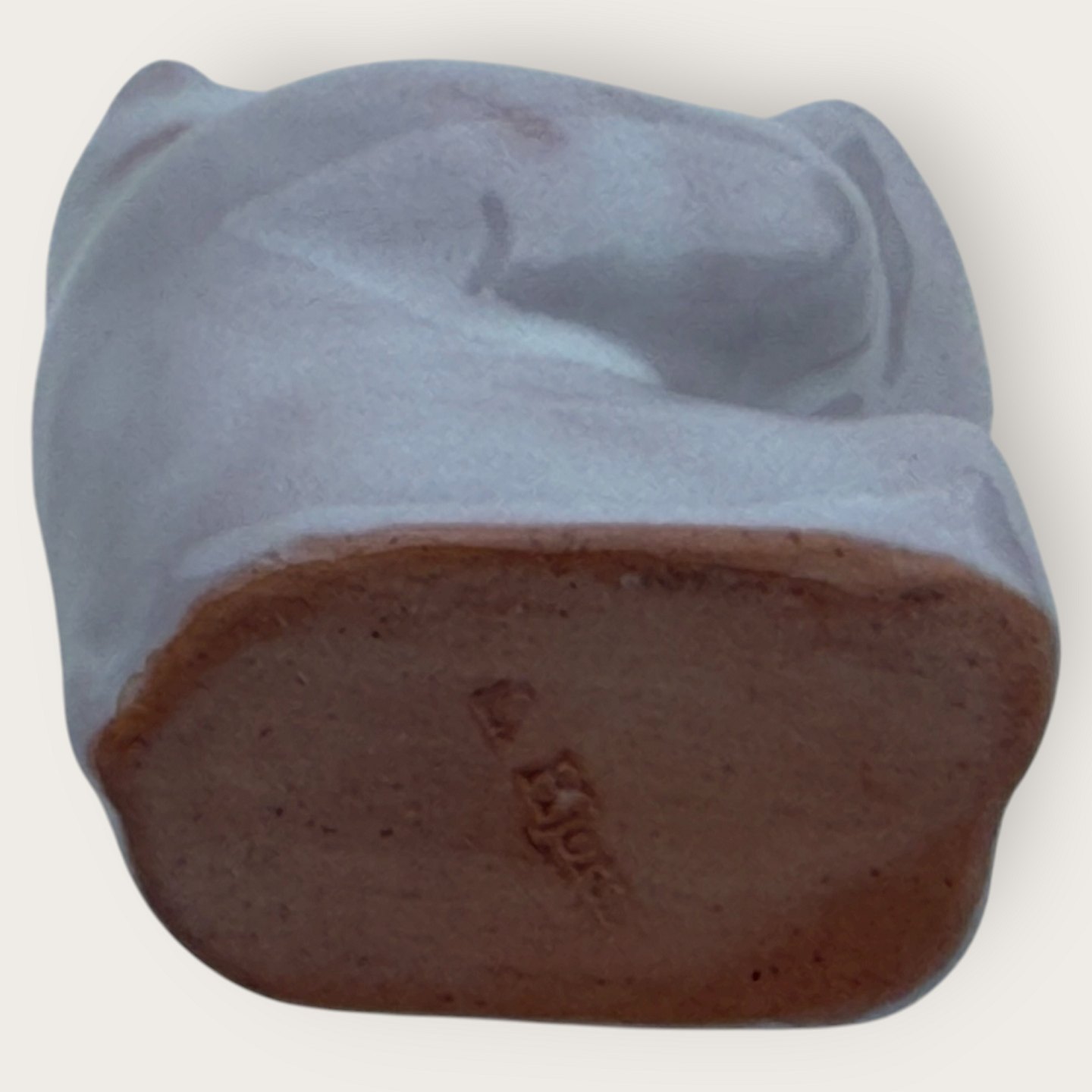 Bornholmsk keramik, Hjorth, Bjørne orkester, Sang, bjørn med hvid glasur, ca. 6x5cm *Pæn stand*