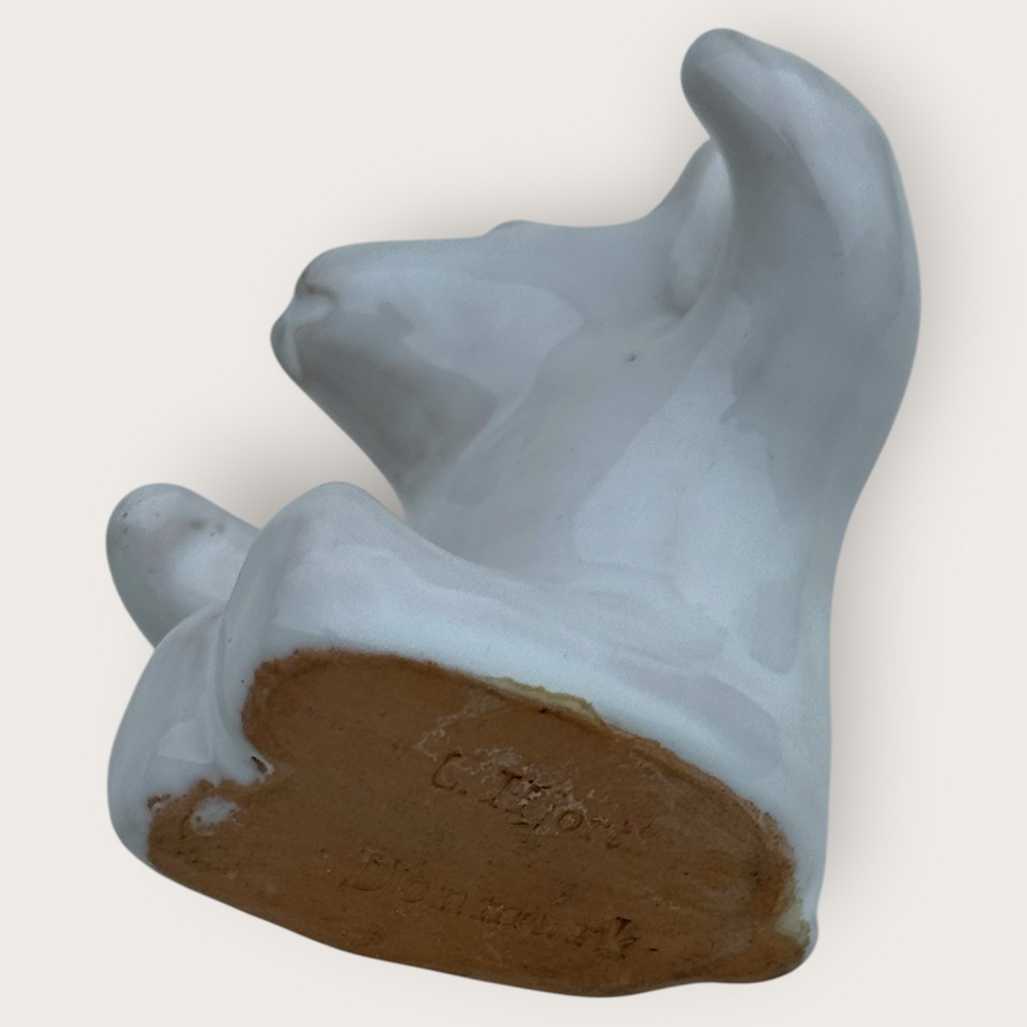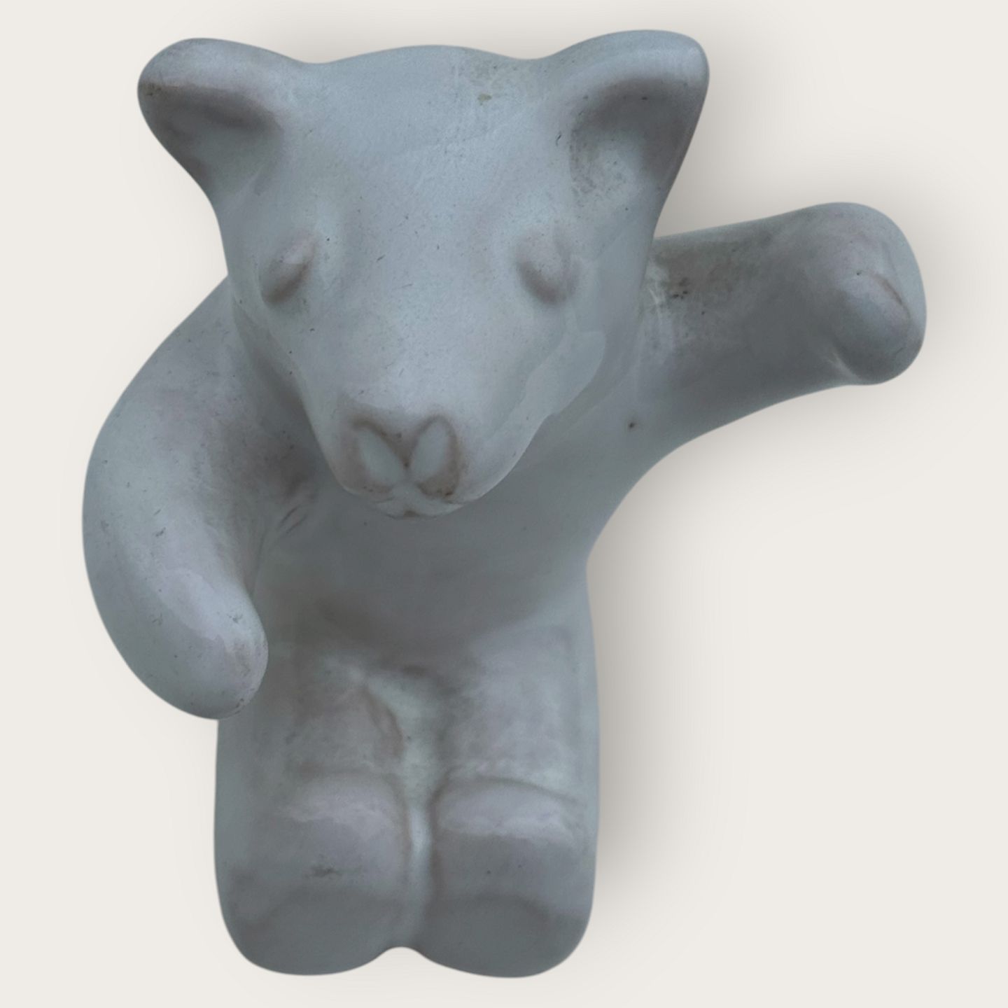 | Bornholmsk keramik, Hjorth, Bjørne orkester, Tilskuer, bjørn med hvid glasur, ca. 5,5x5,5cm *Pæn stand*