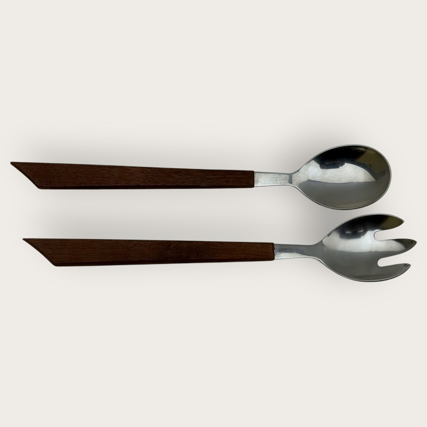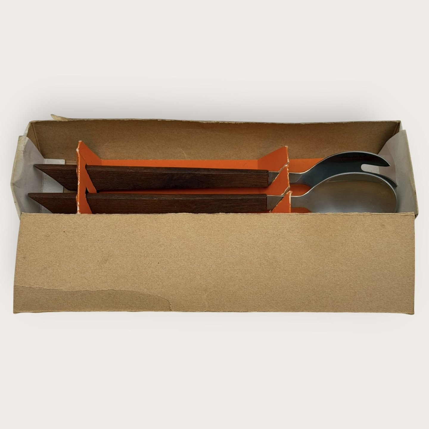 Con Form, Salatsæt i teaktræ og stål fra 1960'erne, i originalæske, 26,5cm langt *Æske noget slidt ellers fin stand*