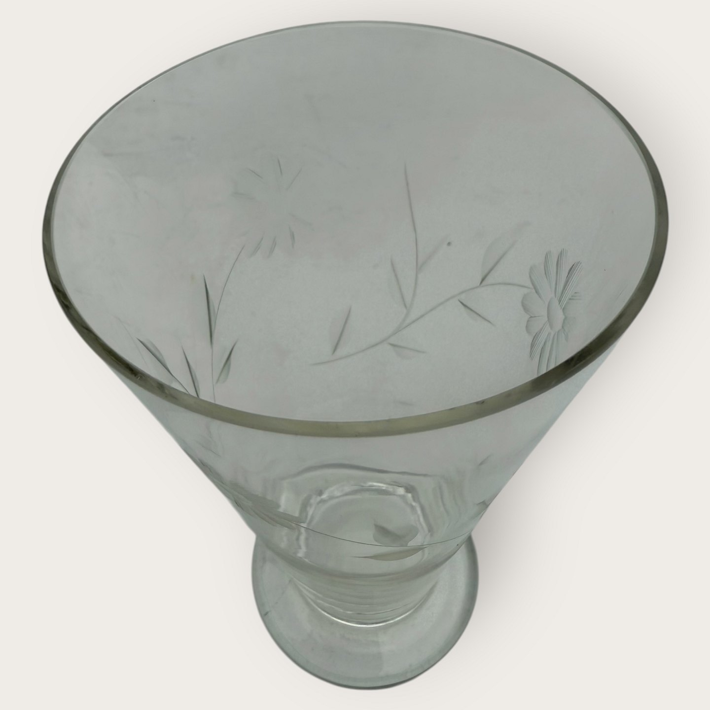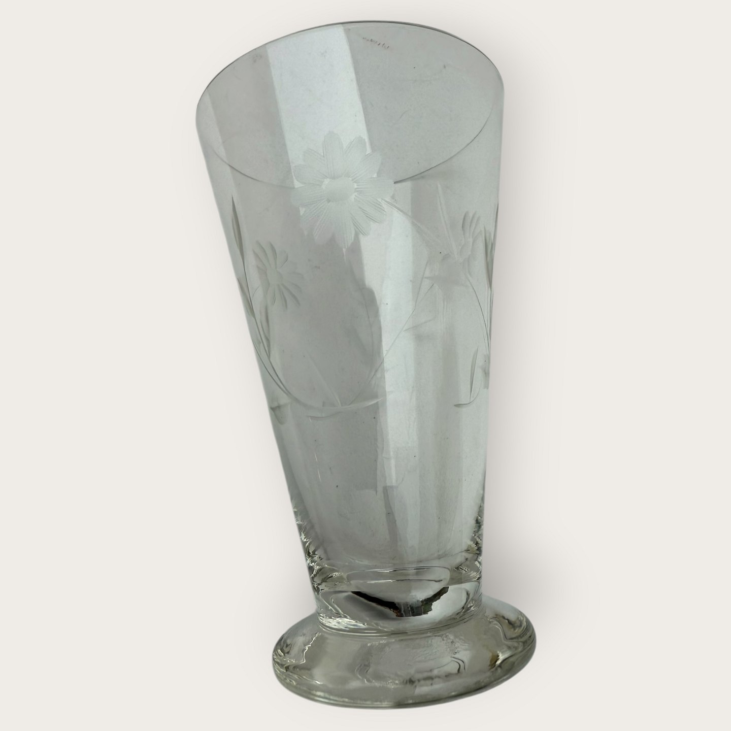 Vand / ølglas med blomsterslibninger, Højde 13,5cm, diameter 9cm *pæn stand*