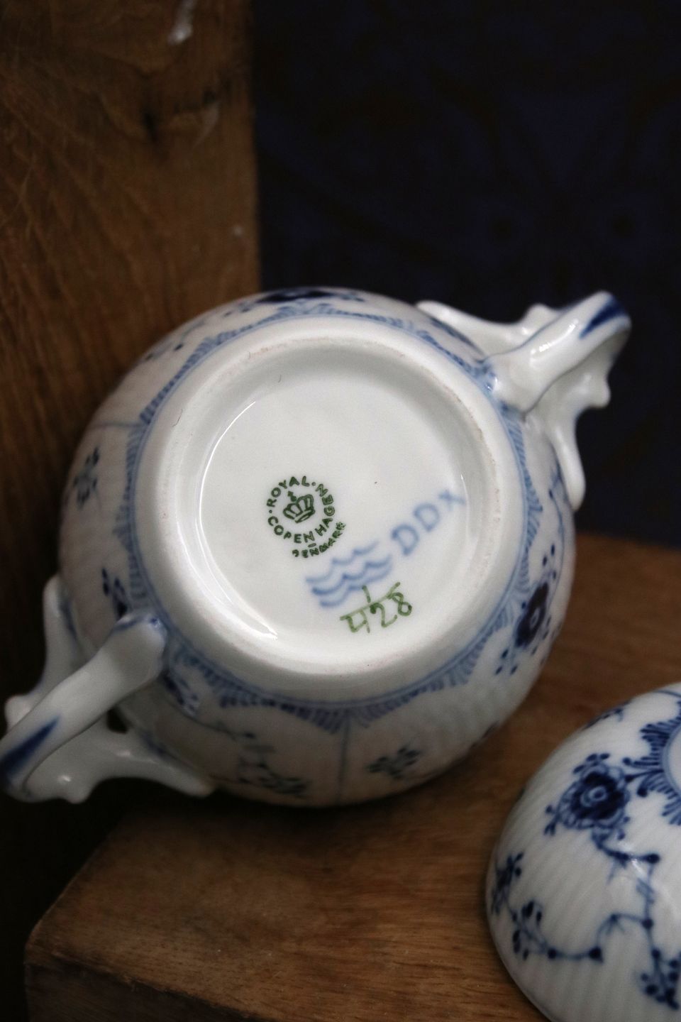 Royal Copenhagen Blue Fluted Plain sugar bowl with lid and handle. 1/428...