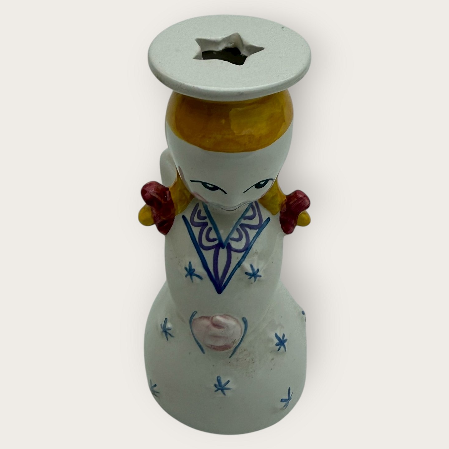 Nymølle keramik, Juleengel, Lysestage, 5cm i diameter, 12cm høj *Pæn stand*