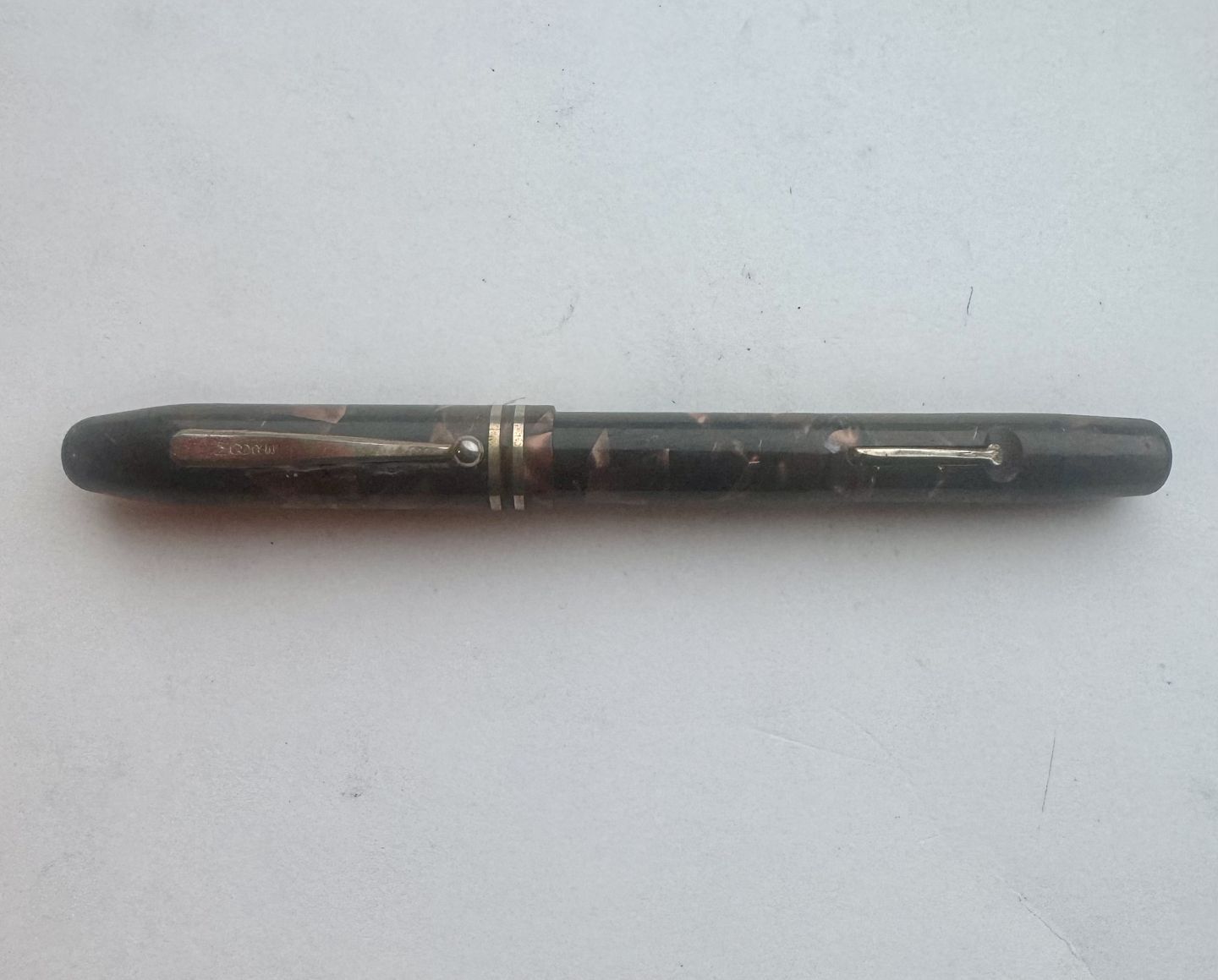 Grøn marmoreret fyldepen fra The Moore Pen Co.