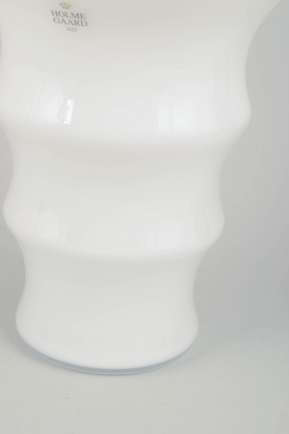 Elegant hand-blown vase in opal white glass from the Karen Blixen series, designed by Anja Kjær for Holmegaard. Distinctive undulating form with a soft organic silhouette. Original box included.
