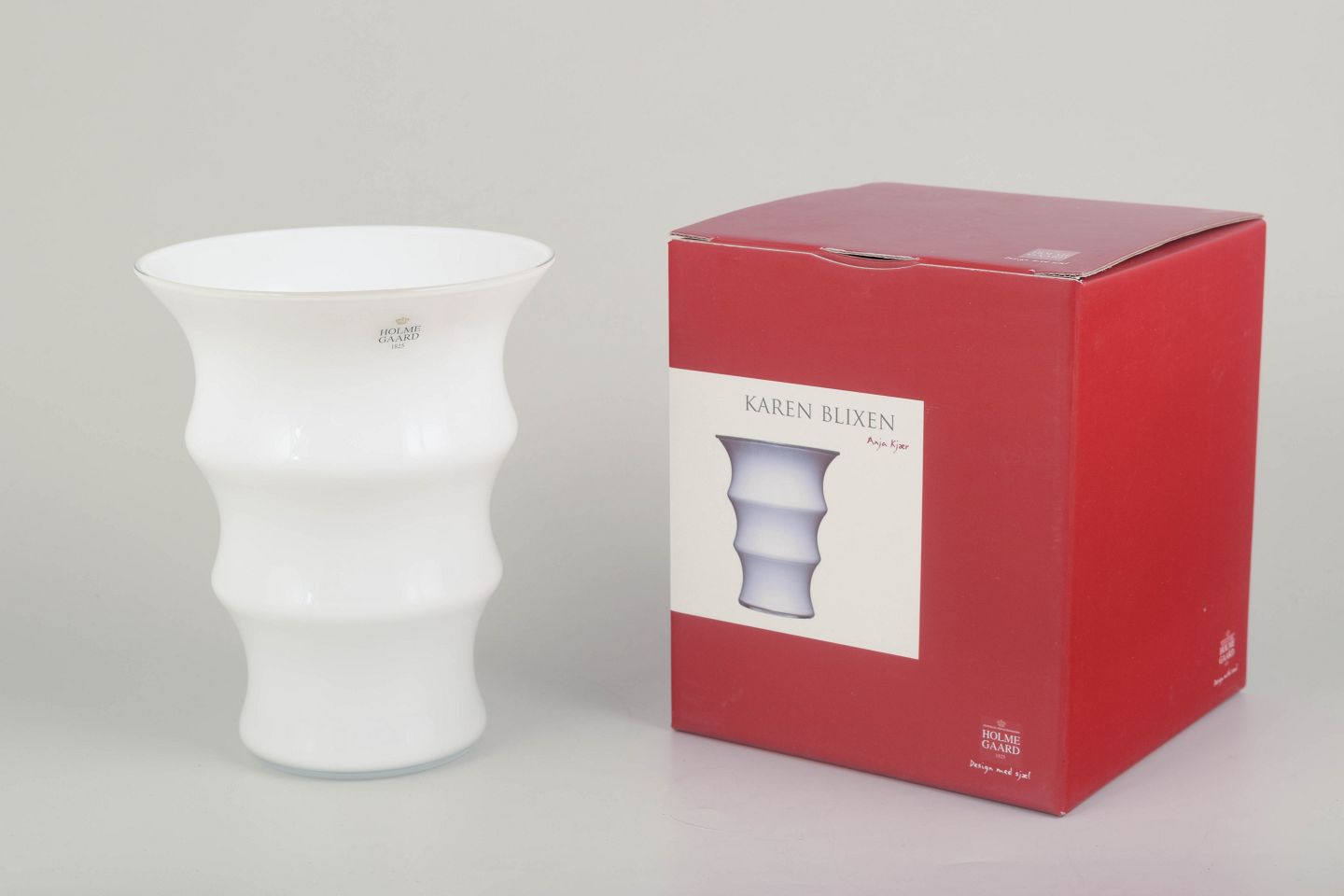 Anja Kjær (b. 1959) is a Danish designer and glass artist who created several iconic collections for Holmegaard, noted for their refined simplicity and sculptural elegance. The Karen Blixen series was designed as a tribute to the celebrated Danish author, embodying her timeless and sophisticated aesthetic.
