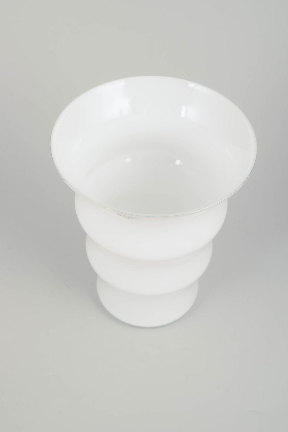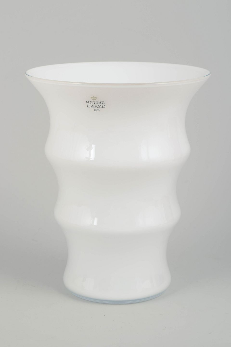 Elegant hand-blown vase in opal white glass from the Karen Blixen series, designed by Anja Kjær for Holmegaard. Distinctive undulating form with a soft organic silhouette. Original box included.