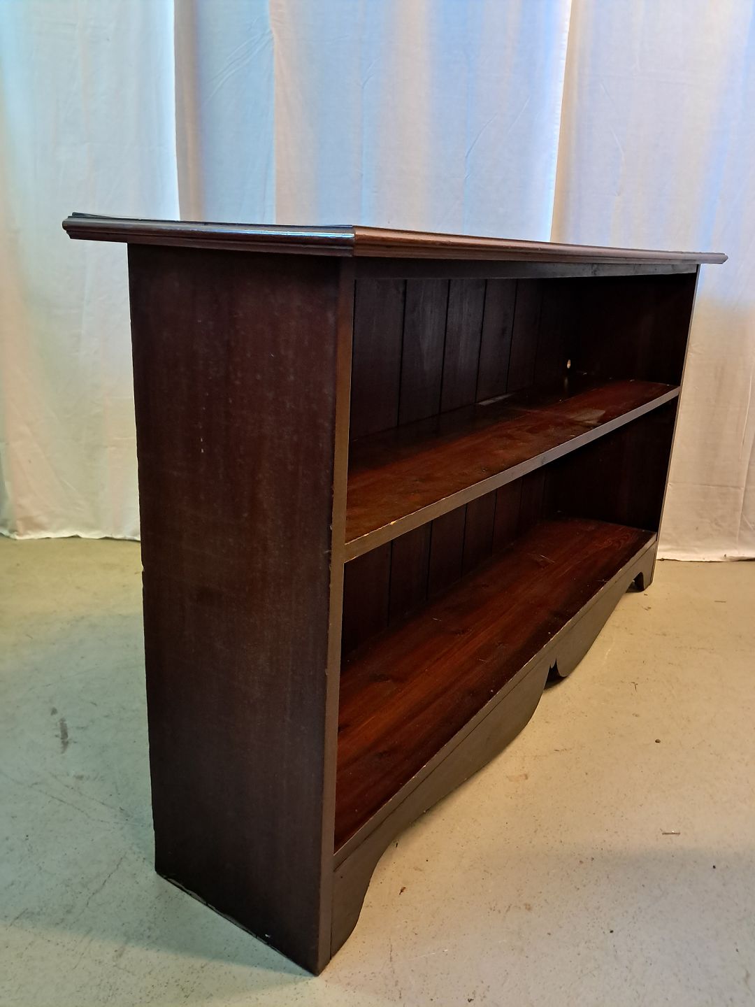 Reol i fineret mahogni, fra 1910erne.