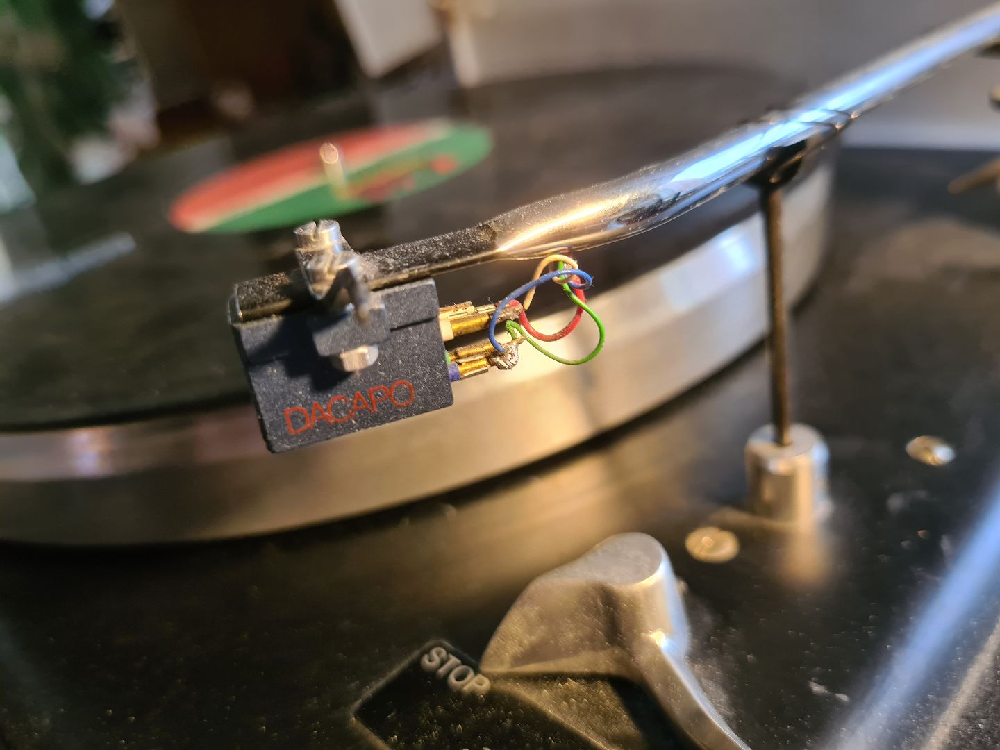 Vintage pladespiller H. H. Mørch model GS 6 i sort trækabinet. Testet og kører måske en anelse ujævnt hastighedsmæssigt, men starter ellers fint op. Hastighedsknop virker ligeledes fint. Kommer med Mørch tonearm model UP4 monteret med DACAPO pickup ligeledes fra Mørch. Derudover originalt cover.