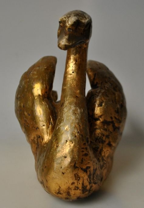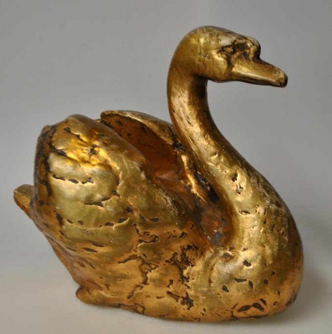Forgyldt apoteker svane, 19. årh. Svane Apoteket, Randers, Danmark. L. 23 cm. H.: 20 cm. Dekoration fra Apoteket.