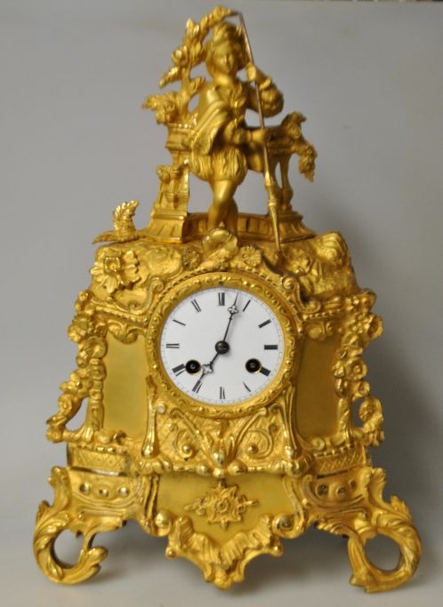 Fransk lueforgyldt kaminur, 1800-tallets begyndelse.