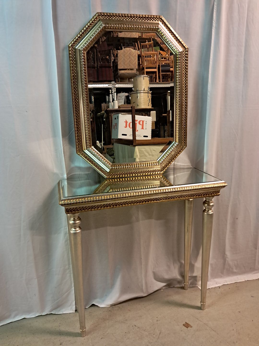 Malet spejl og bord fra 1990erne.