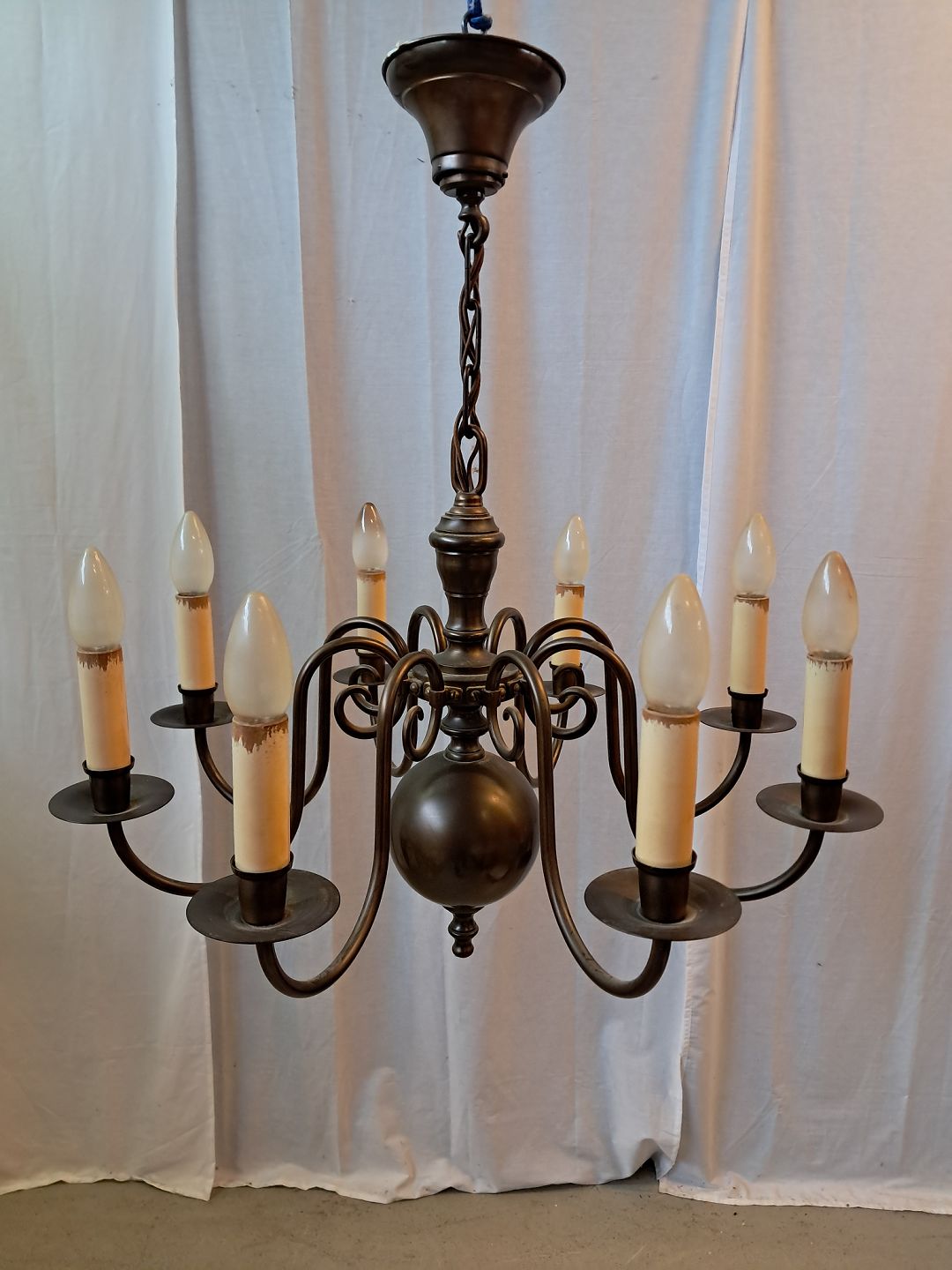 8-armet kirkekrone i bruneret messing, fra 1930erne.