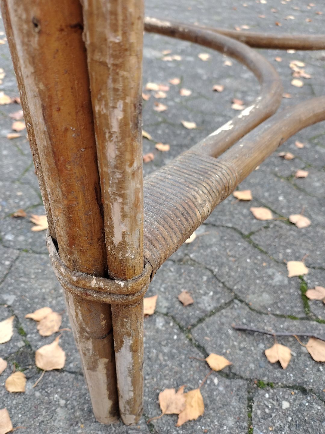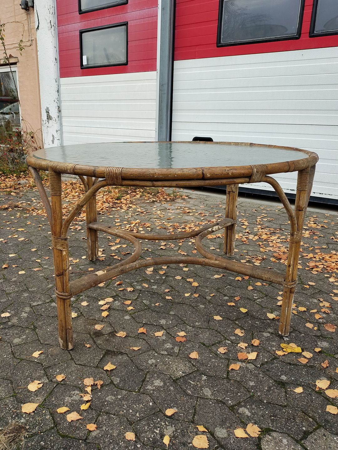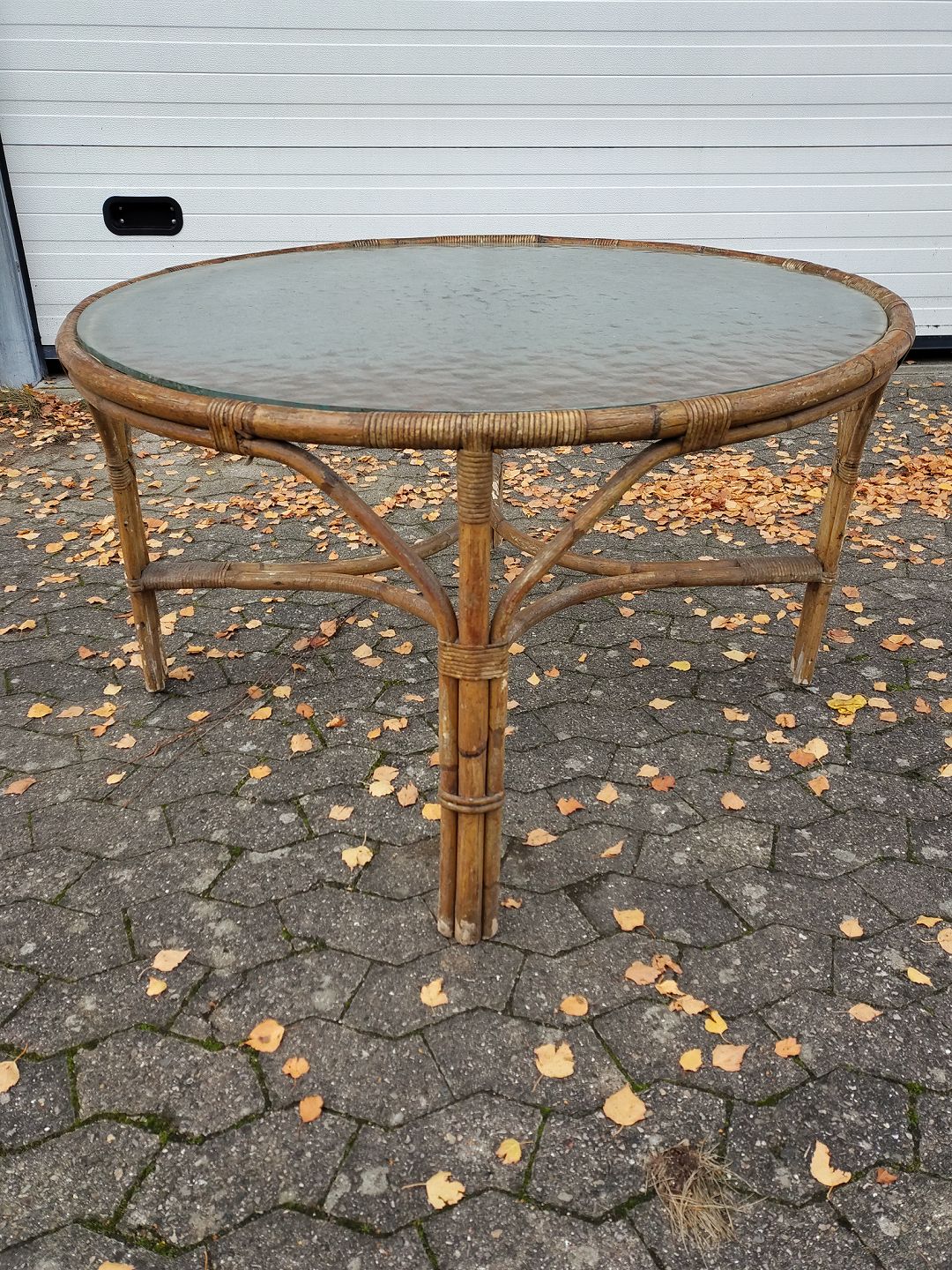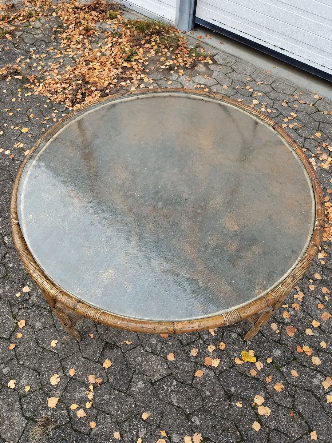 Bambusbord med glasplade, fra 1970erne.