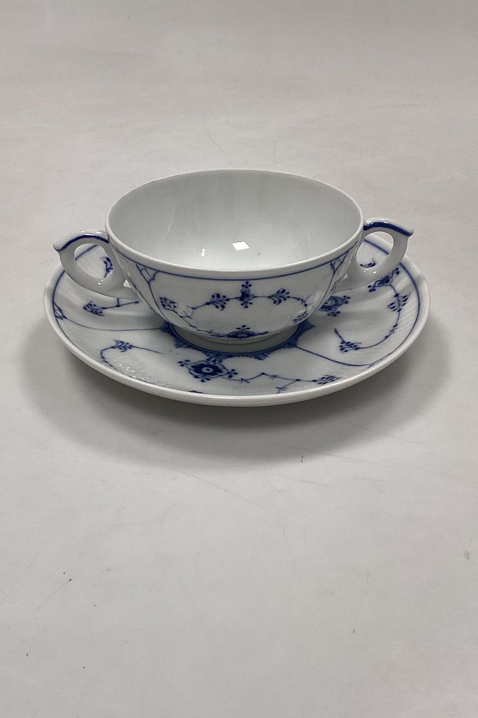 Royal Copenhagen Musselmalet Riflet Bouillon Kop med underkop No. 344