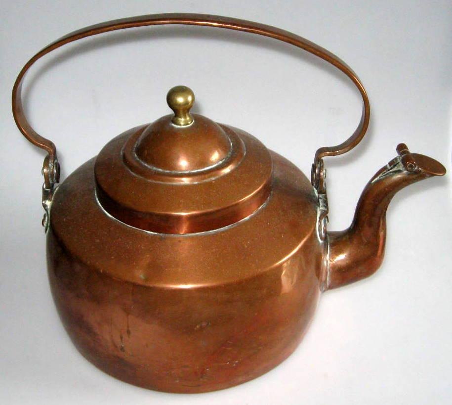 Kobberkedel, Danmark. 19. årh. Med hank og tud. Stemplet Kobbermøllen 1808 -1839. Højde med hank. 28 cm.