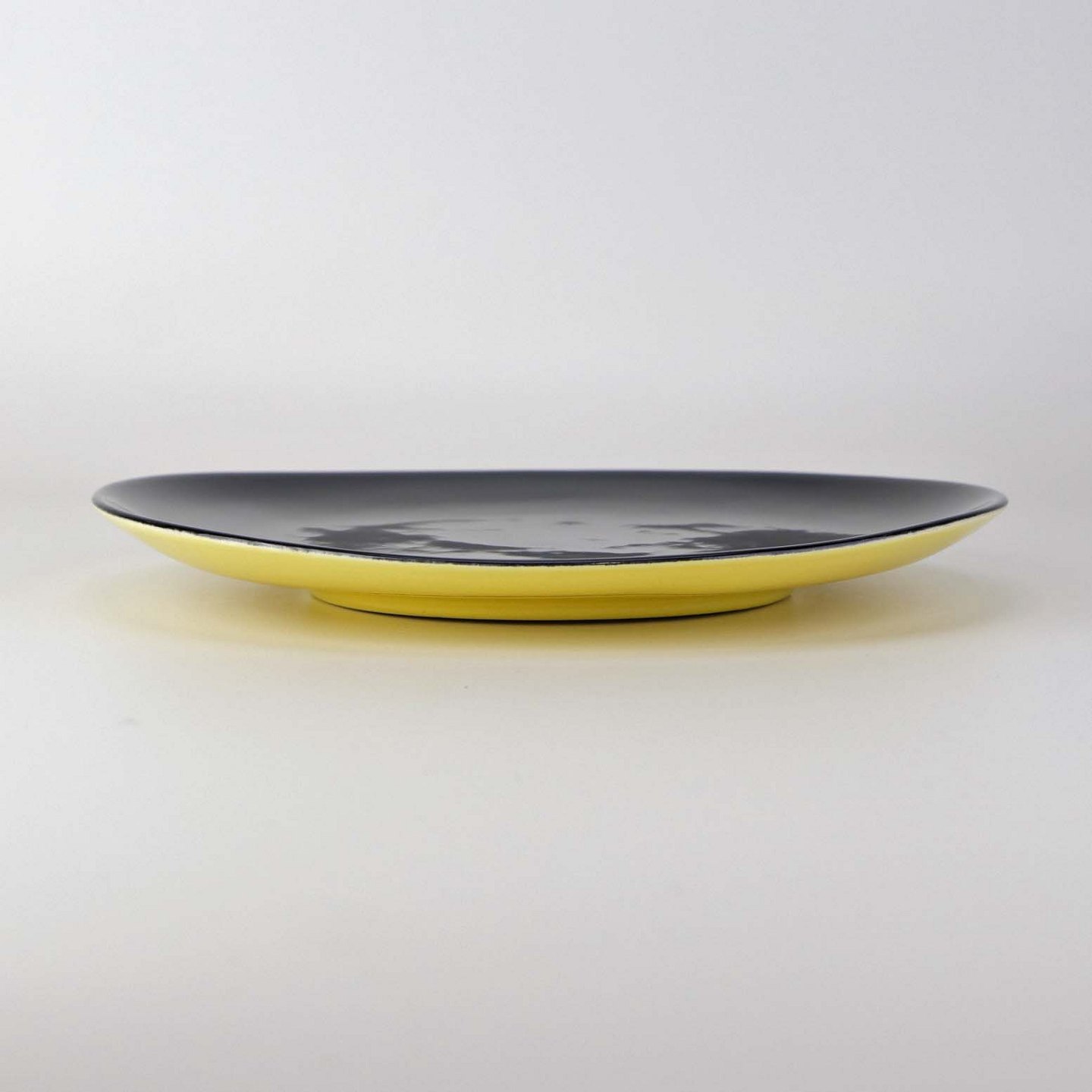 Fremstår med let ridset inderside samt mørk plet på bundkanten.