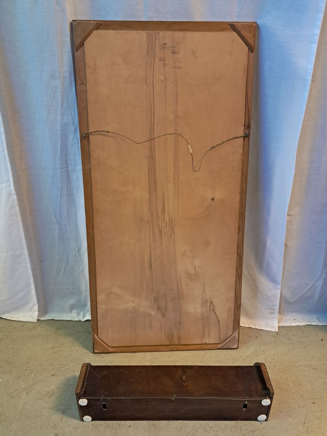 Spejl i fineret mahogni med intarsia, fra 1950erne.