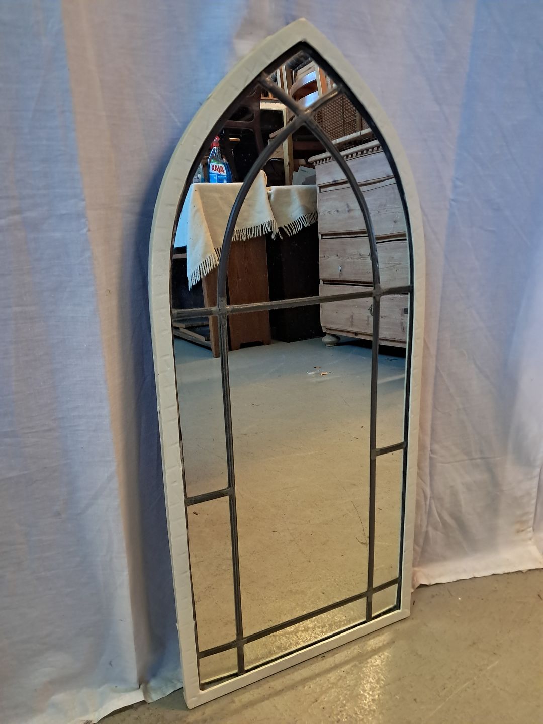 Spejl i malet smedejern med blyindfattet spejlglas, fra 1930erne.