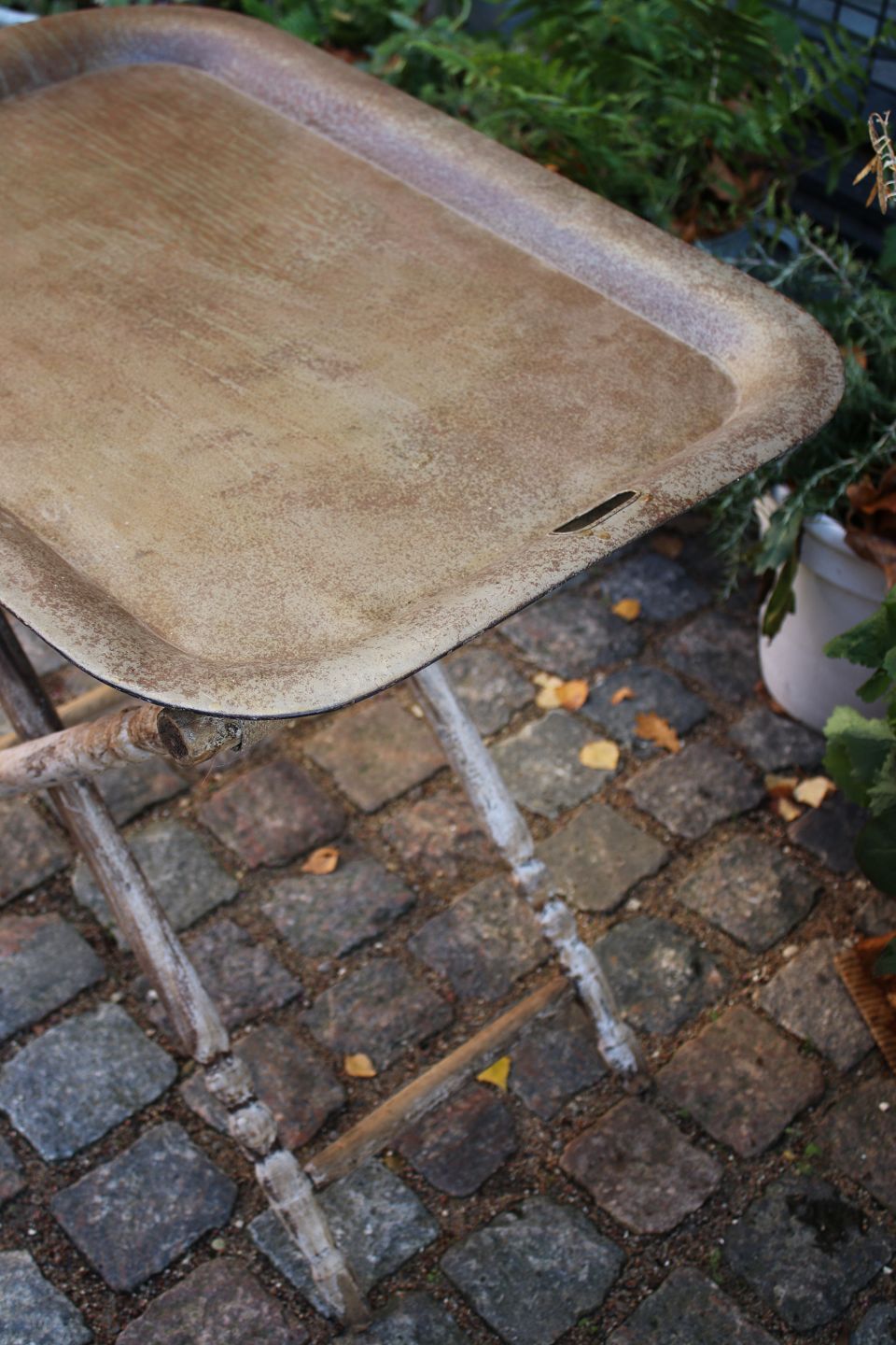Gammelt bakke bord med understel i træ med en rigtig fin patina og