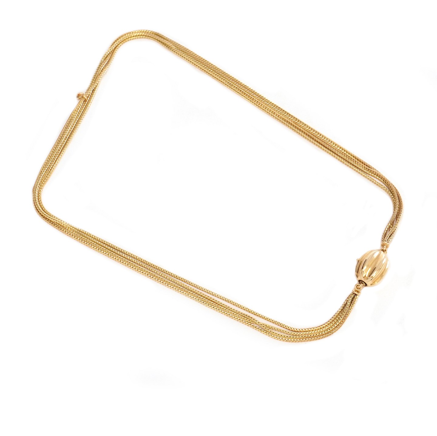 Ole Lynggaard kaffebønnelås med fireradet halskæde begge i 14kt guld. L: 41cm