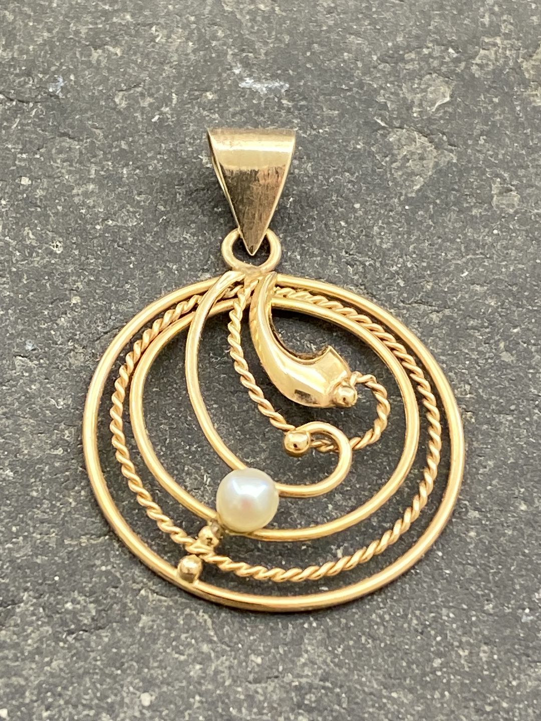14 carat gold pendant D.2.6 cm. with pearl from goldsmith Jens Aagaard item no. 626584