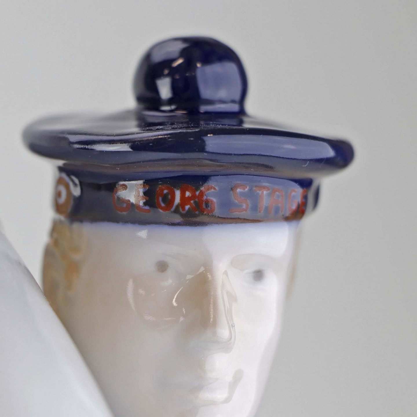 Figur i porcelæn med motiv af Matros med vadsæk fra skibet George Stage. Nr. 2456