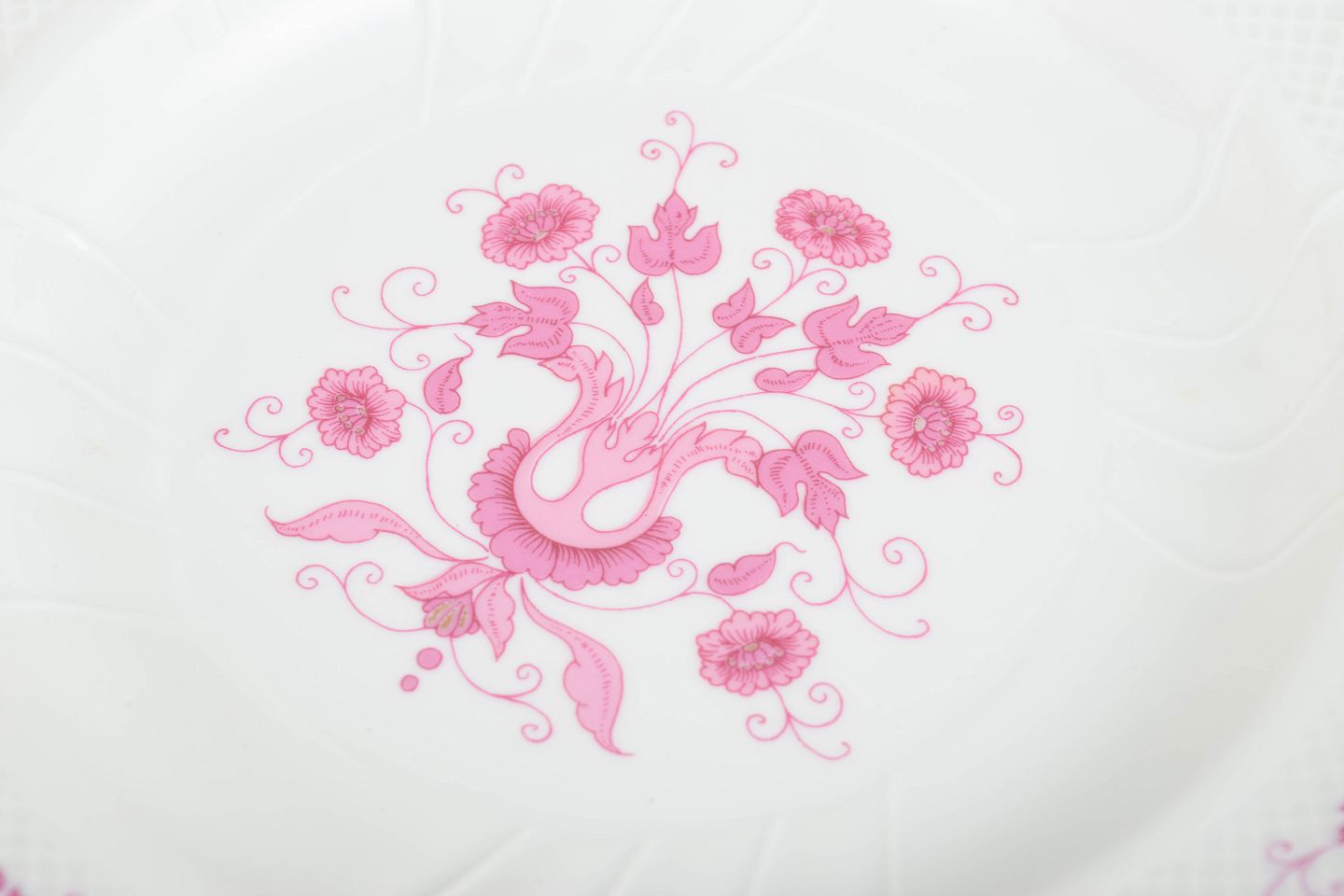 Hollóháza Porcelain Manufactory, Seks dybe tallerkener, midt 1900-tallet.